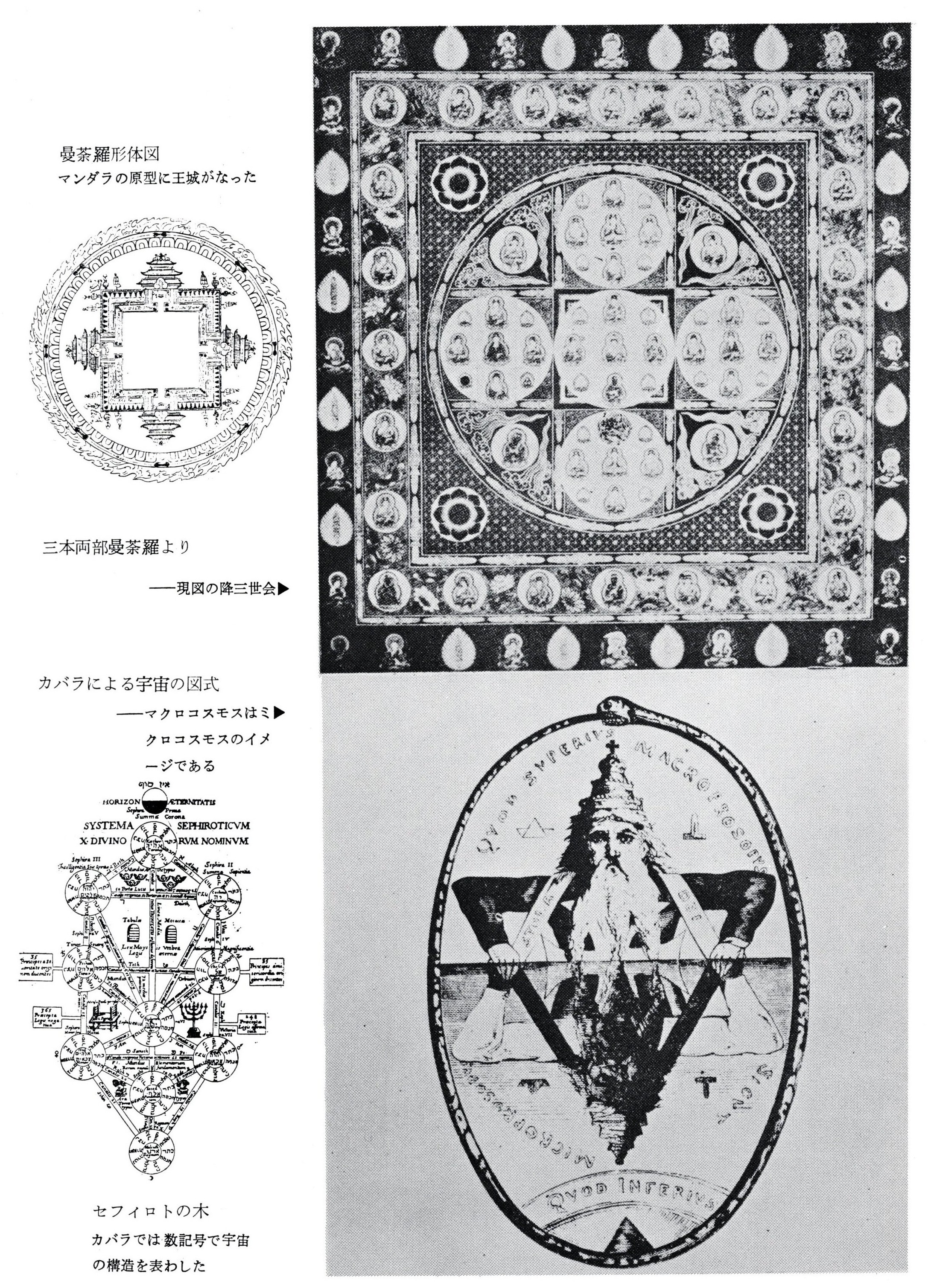 Persons sitting around such sand mandalas would be looking down on cosmic space from above. Only later did they come to be painted for hanging on the walls of esoteric Buddhist temples, confronting viewers head-on, although they still presented an aerial view. This, in sum, gave rise to the Japanese image and expression of space as a distributive mandala overview.