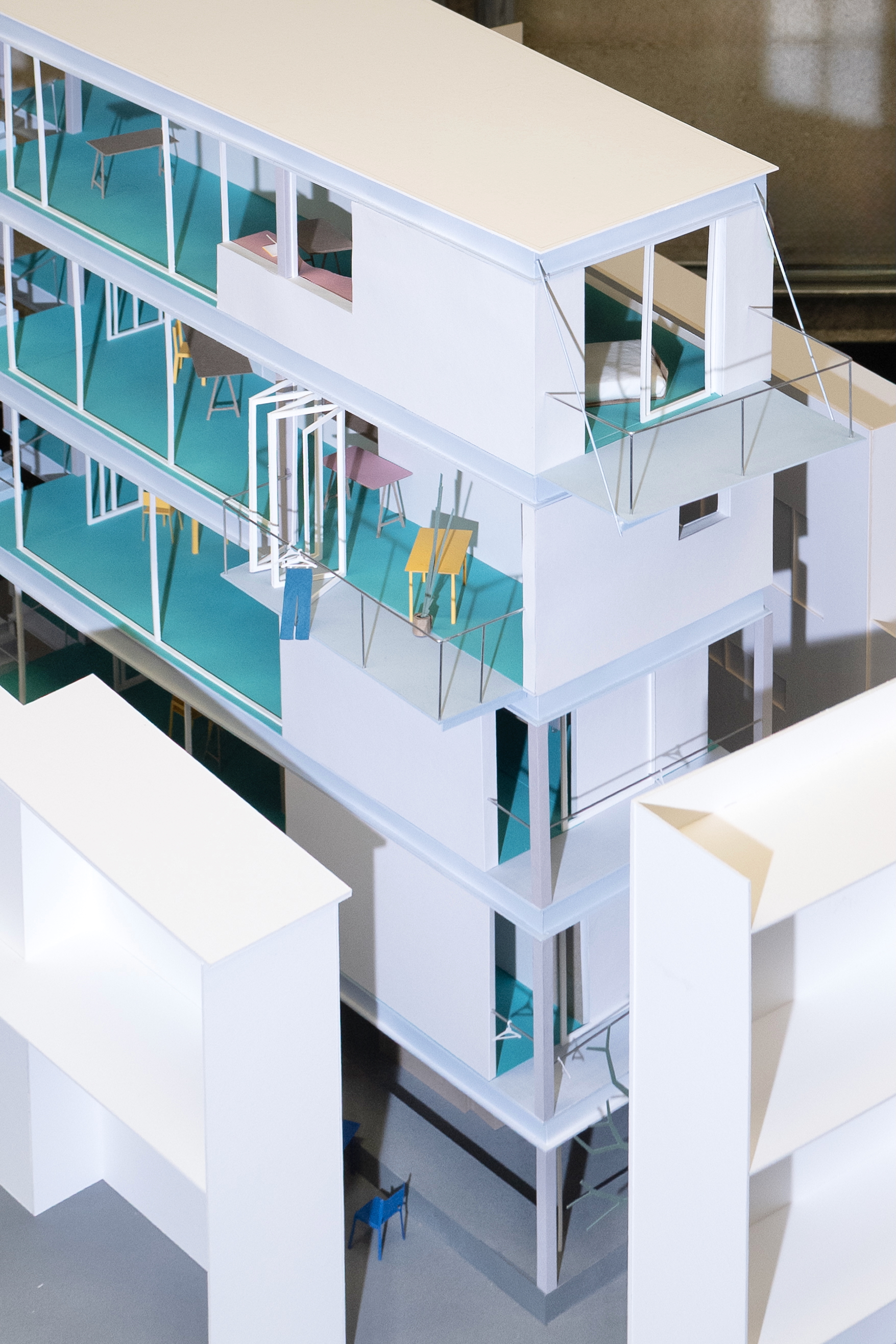 “Live Big in a Small House” proposes a dwelling prototype that brings living and working together on a narrow cul-de-sac site in Shimokitazawa, Tokyo. Responding to the neighborhood’s loss of local texture through gentrification, the project looks to restore the close ties between daily life and labor that once shaped the area. The building sits on a 6-by-15-meter lot and includes four house-workshop units and shared programs like a laundromat and staircase garden. Ordinary architectural elements such as staircases, balconies, doors, and built-in furniture are used to create subtle shifts between inside and outside, living and working. Each unit follows a U-shaped circulation to expand the experience of space and allow functions to overlap. A dyeing area placed across from a neighbor’s window, or a desk extending onto a balcony, are small moments that open the project to its surroundings. Rather than relying on grand public gestures, the project explores how soft and small thresholds can foster conviviality in dense urban neighborhoods.