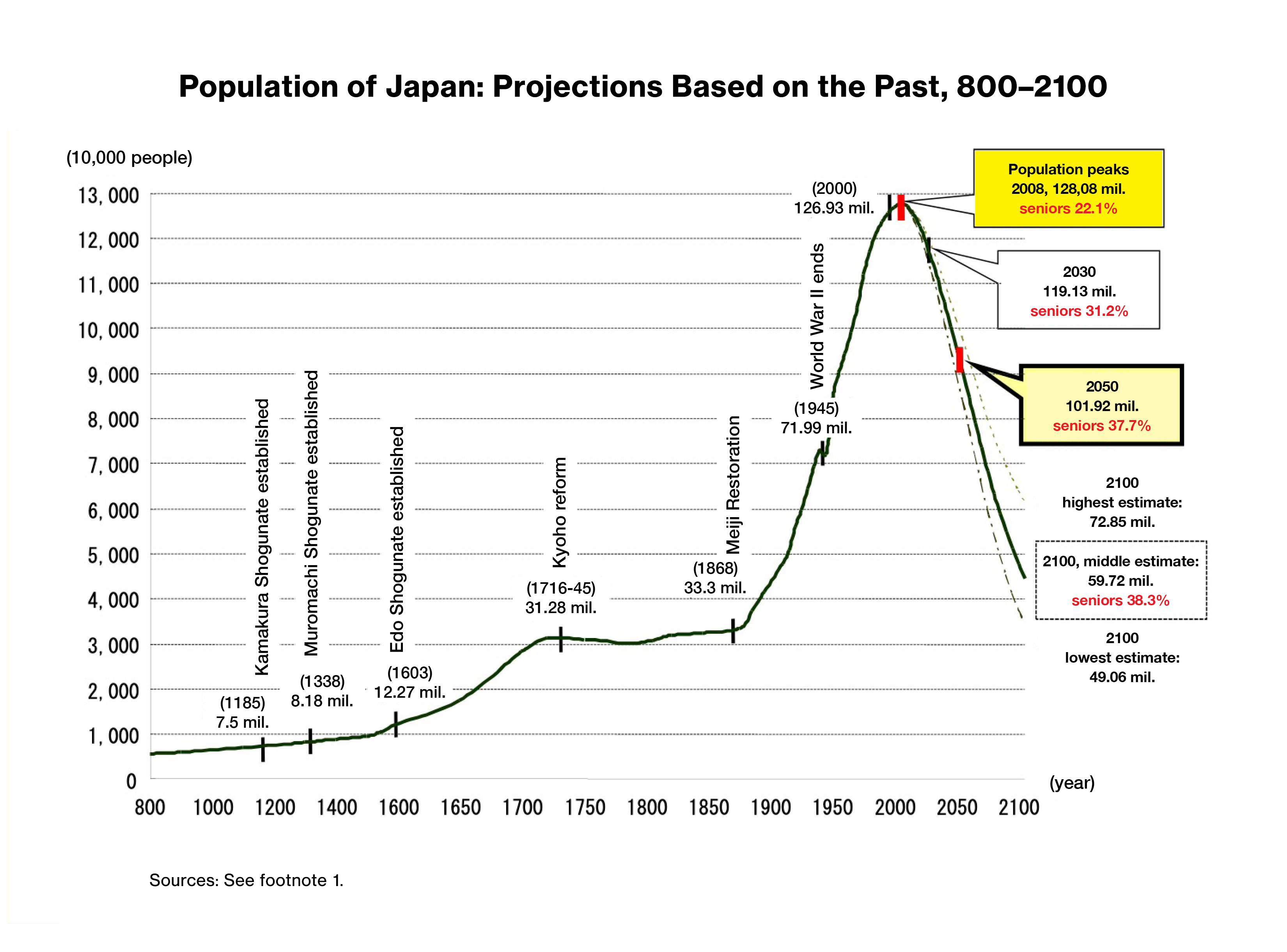 The distinguishing characteristics associated with Japan, the country and the society, go through dramatic permutations over time. In the 1980s, Japan was perceived as the nation boasting the world’s most rapid economic growth—as touted in Ezra Vogel’s book Japan as Number One—and as a high-tech wonderland. But Japan has changed much since then. Today it is distinguished, above all, by being the world’s most rapidly depopulating and aging society.