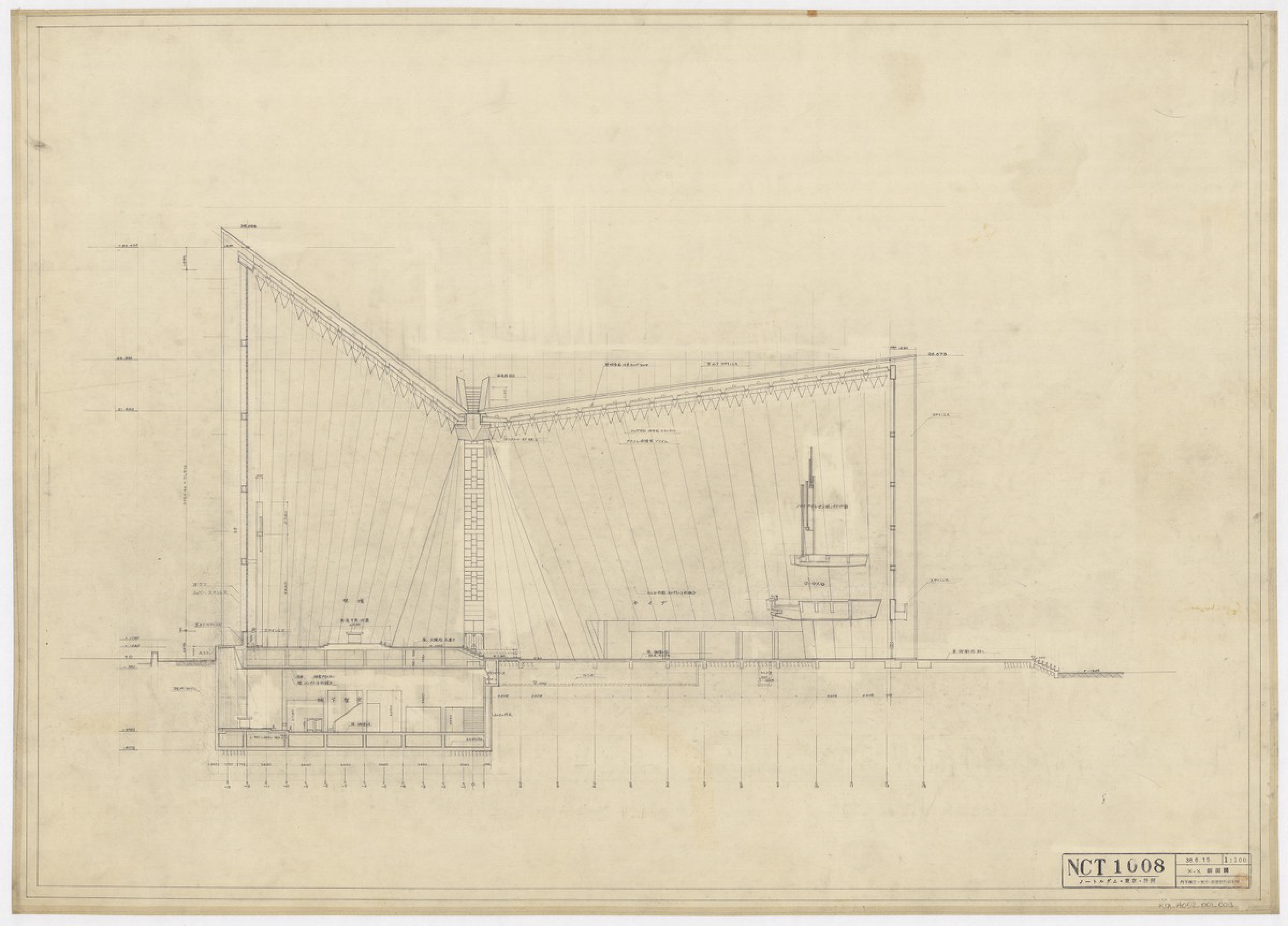 The Kenzō Tange Archive. Gift of Mrs. Takako Tange, 2011. St. Mary’s Cathedral (Tokyo). Section. Courtesy of the Frances Loeb Library, Harvard University Graduate School of Design.