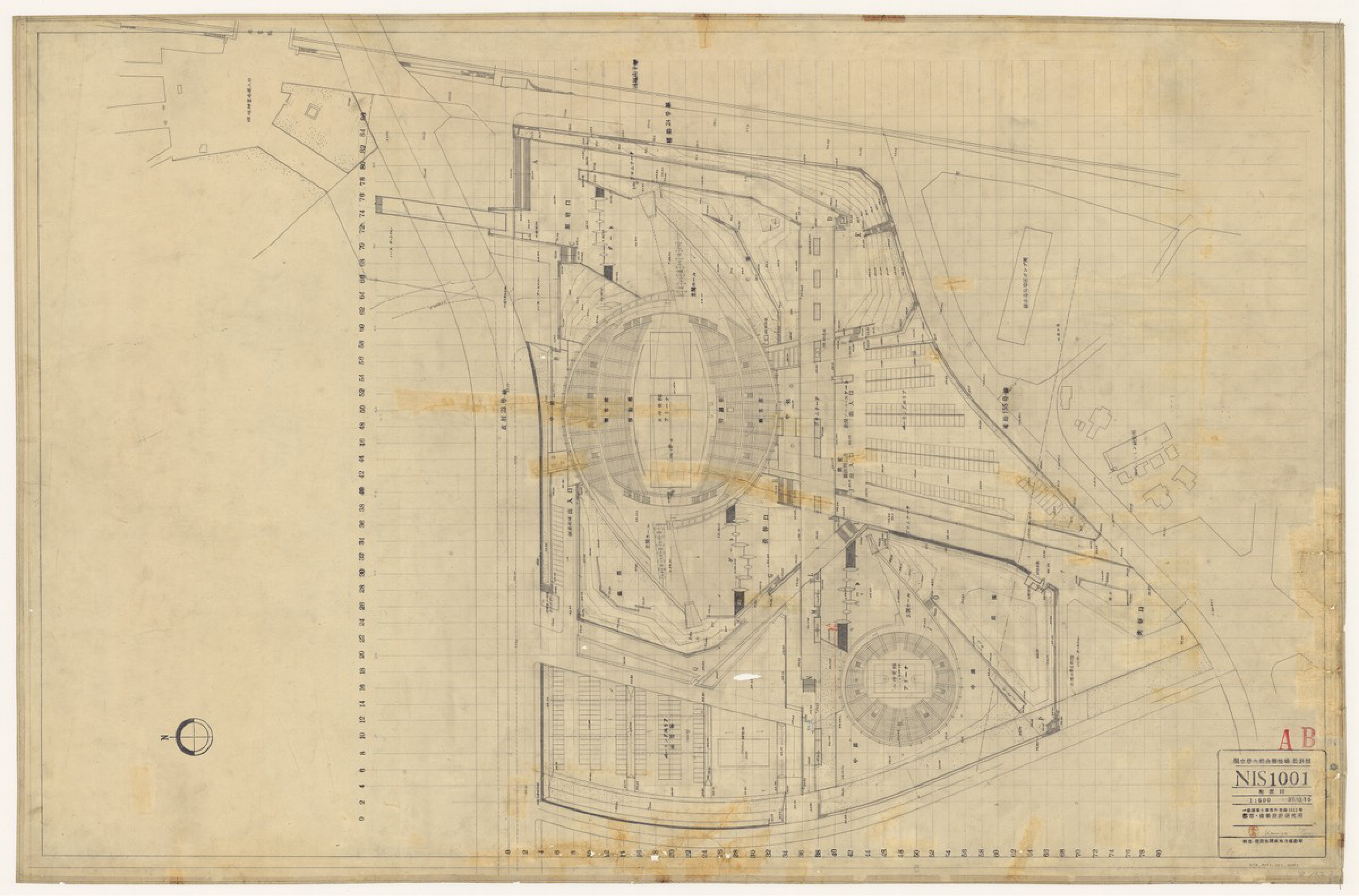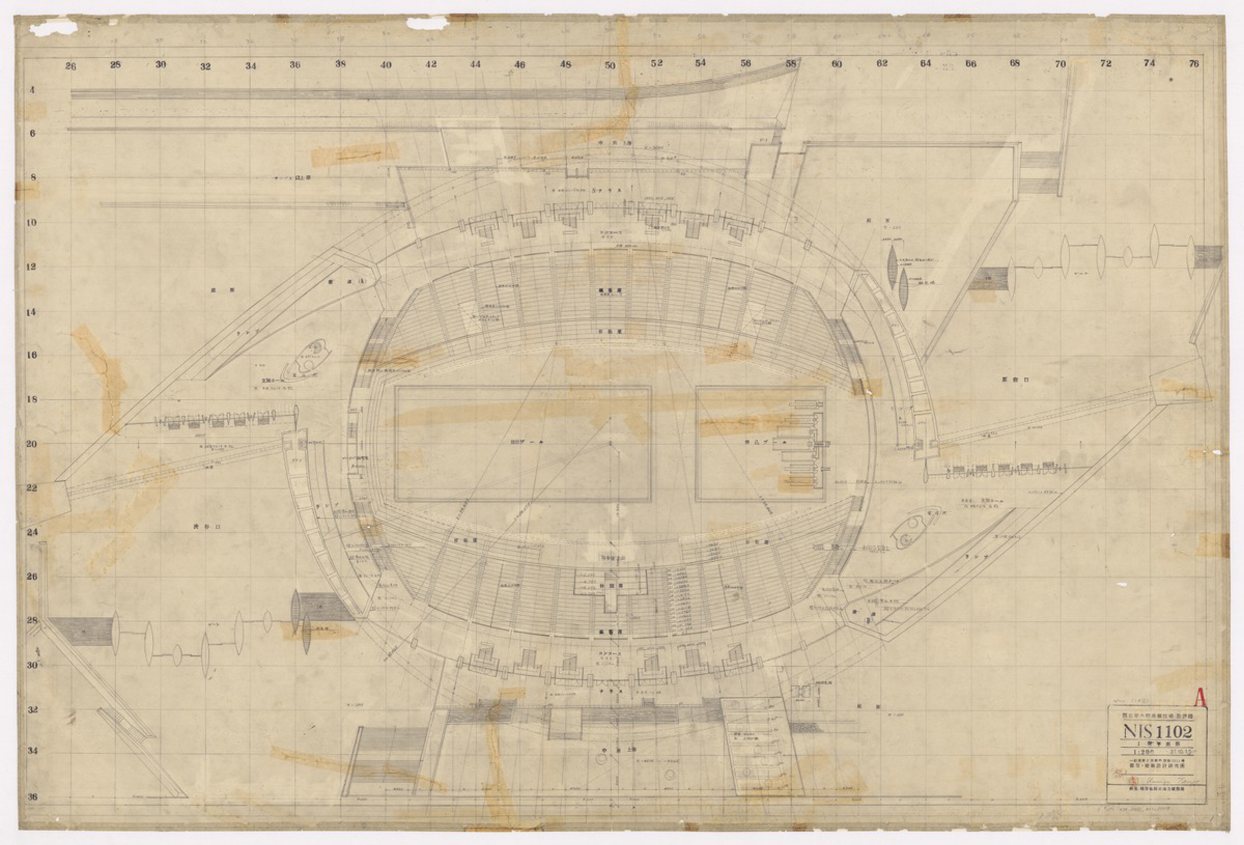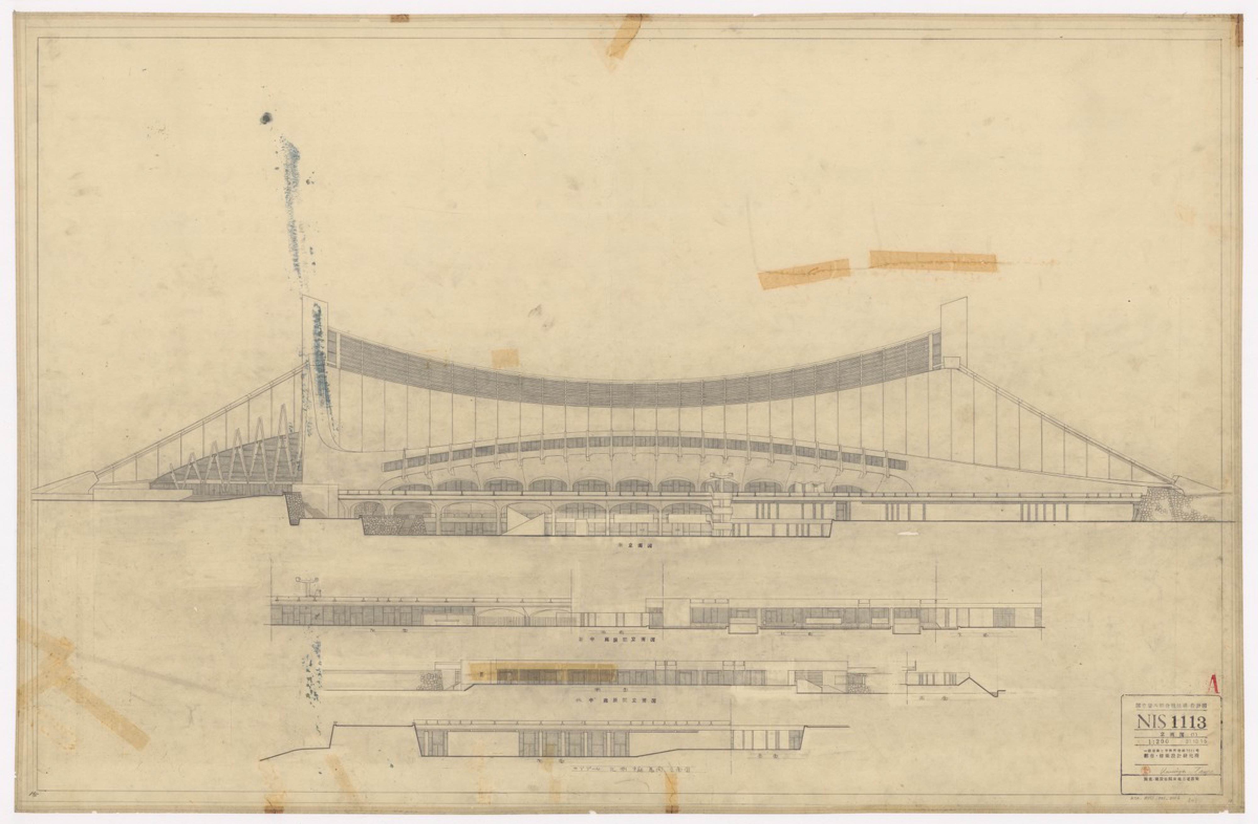 The Kenzō Tange Archive. Gift of Mrs. Takako Tange, 2011. Yoyogi Gymnasium (Tokyo). Layout drawing. Courtesy of the Frances Loeb Library, Harvard University Graduate School of Design.