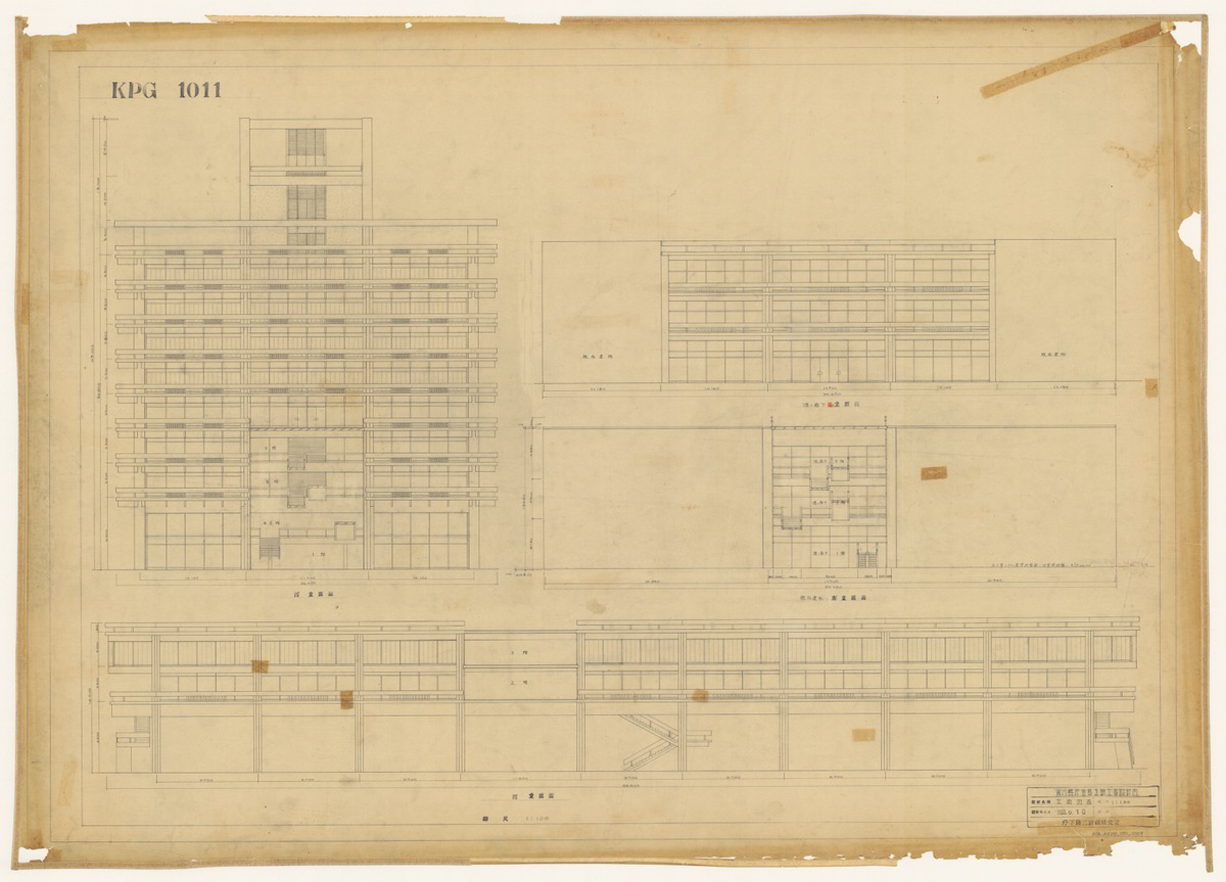 The Kenzō Tange Archive. Gift of Mrs. Takako Tange, 2011. Kagawa Prefectural Government Building. Elevations. Courtesy of the Frances Loeb Library, Harvard University Graduate School of Design.