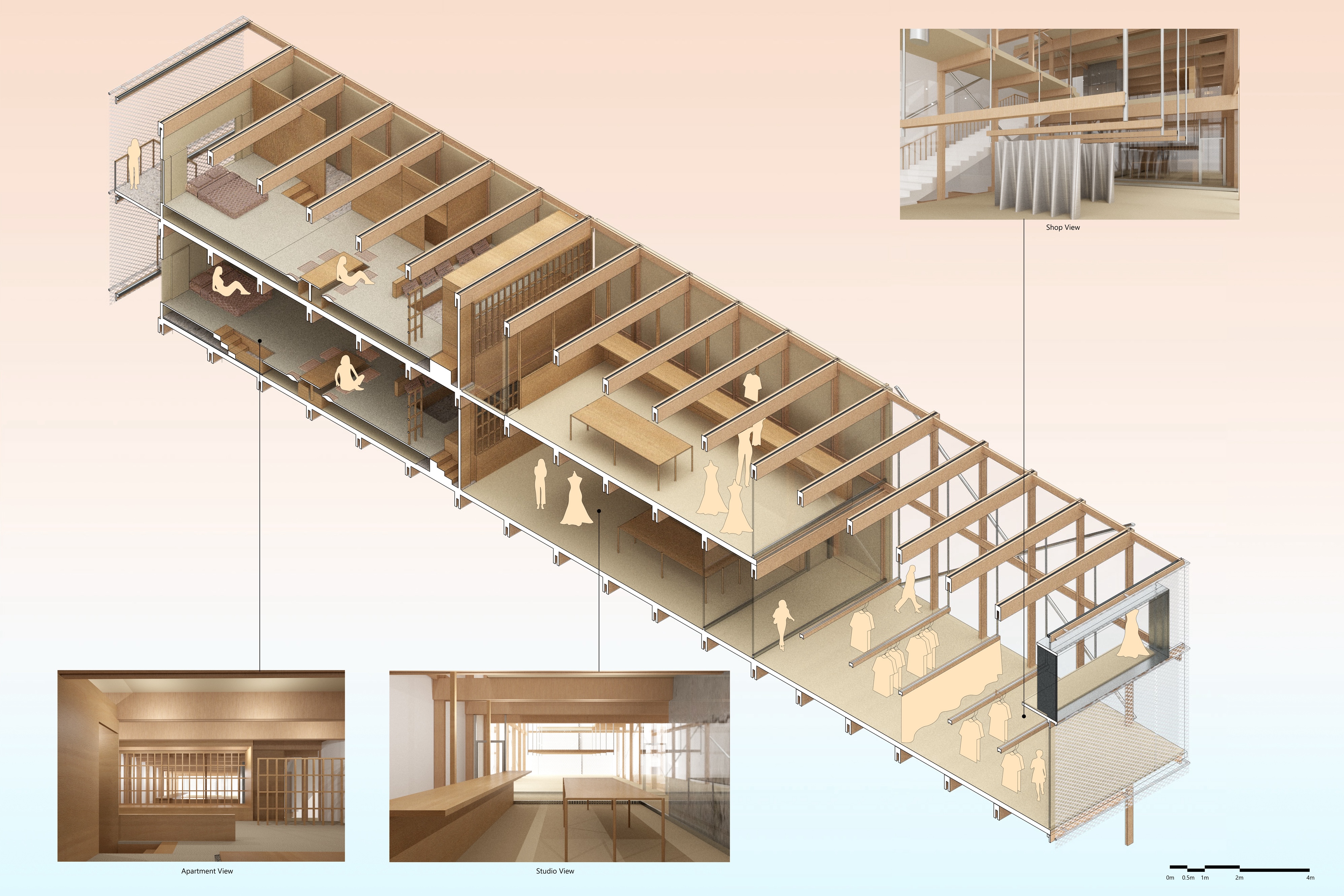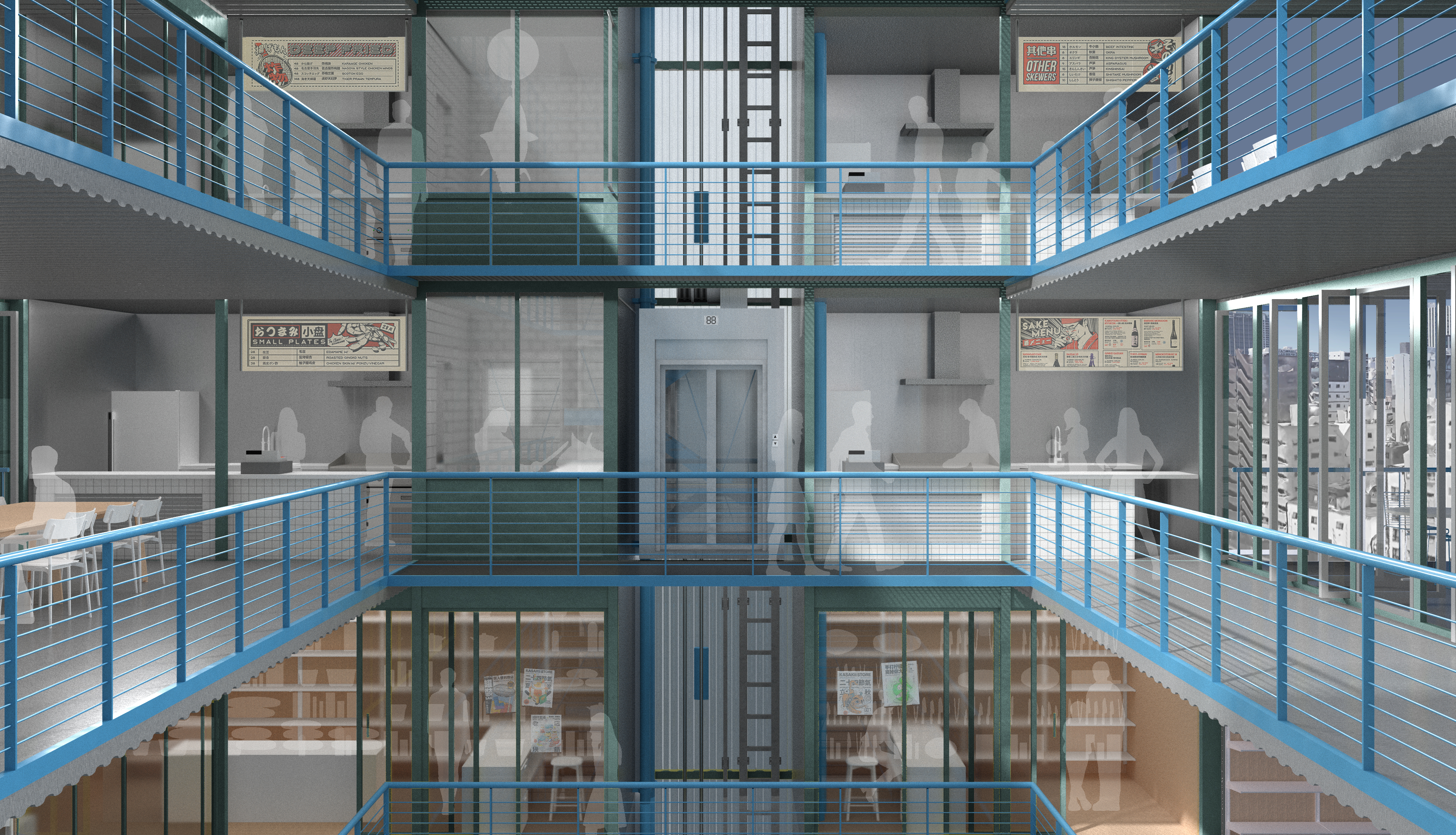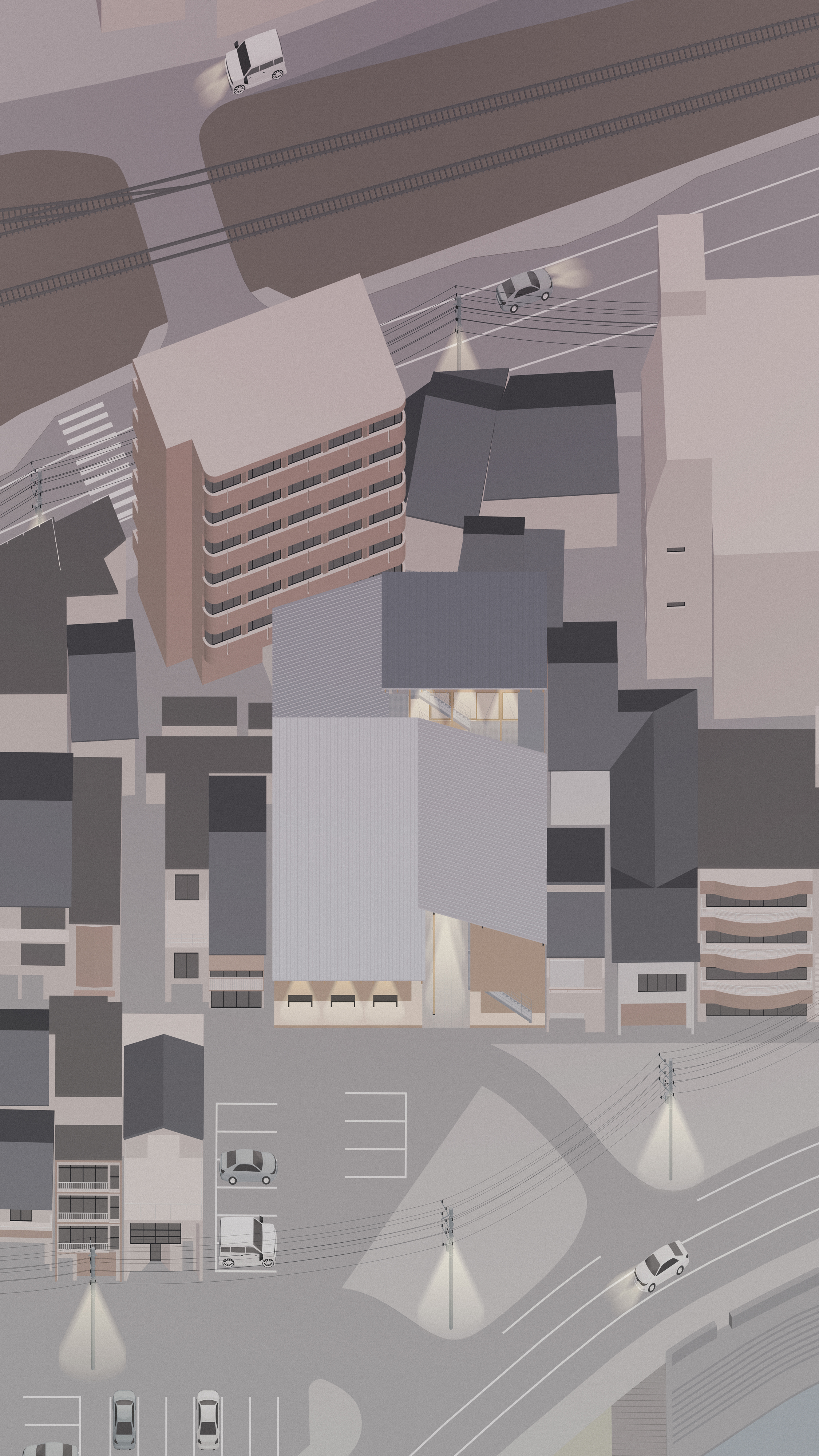 Shimokitazawa is known for its maze of narrow streets, small theaters, and independent shops—a Tokyo neighborhood that has long embodied the city’s creative subculture. In recent years, however, its character has been challenged by large-scale redevelopment and shifting demographics. The aim of the studio was to explore how architecture might enable small-scale, community-driven regeneration in the face of these pressures. Through a series of urban and architectural interventions, the studio sought to envision new forms of conviviality, adaptability, and shared urban life within Tokyo’s evolving landscape.