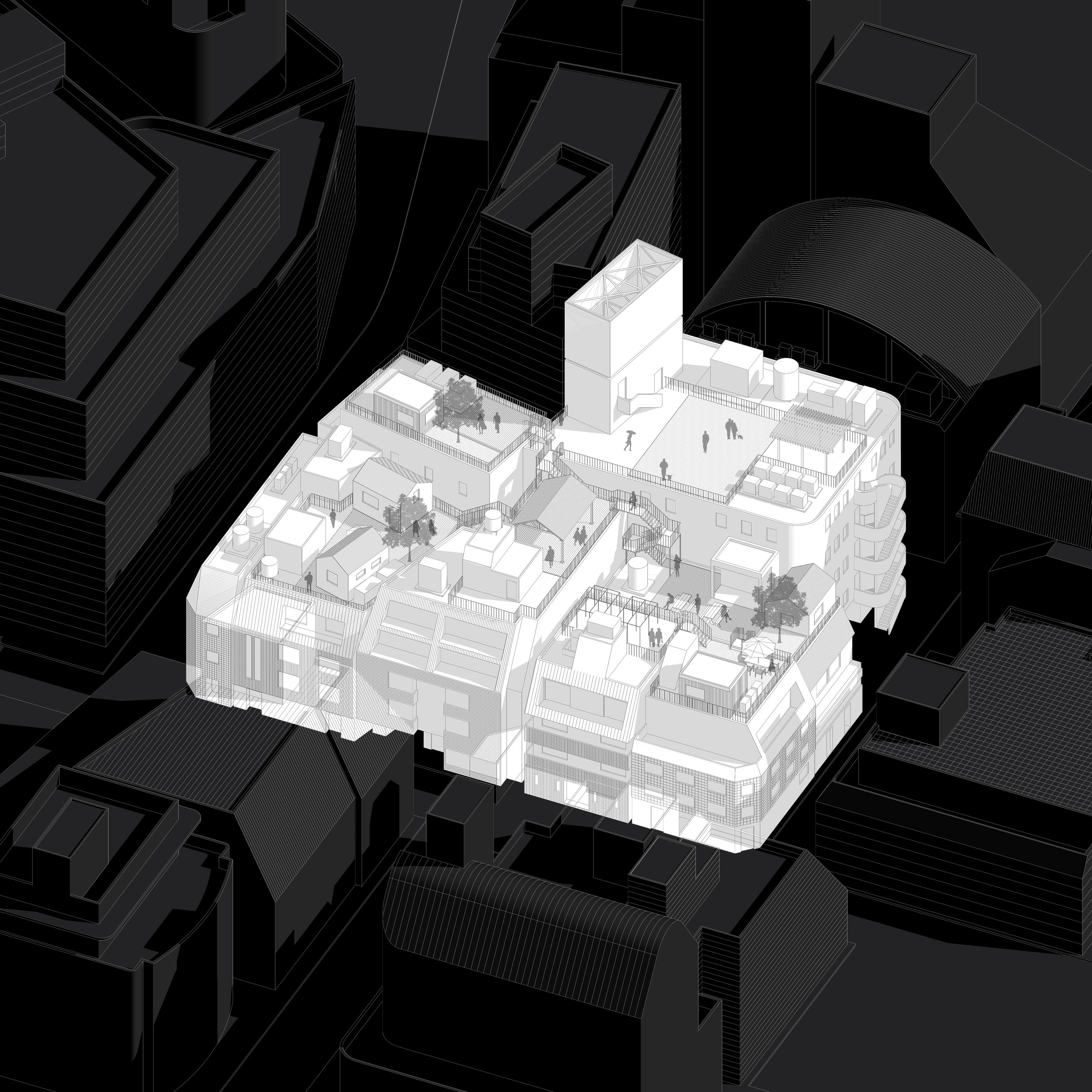 The hybrid and multi-representational method of the seminar included discussions of architecture, urban design, technology, theory and practice, infrastructure, nature, institutions, and memory, as well as the ecologies of literary and visual culture. These themes were developed through presentations, discussions, and interviews with guest speakers on diverse topics such as films, manga, photography, and other visual materials. The work presented by the students is primarily propositional in character and focuses on a wide range of themes linked to the future of urbanization. A selection of this work is presented below.