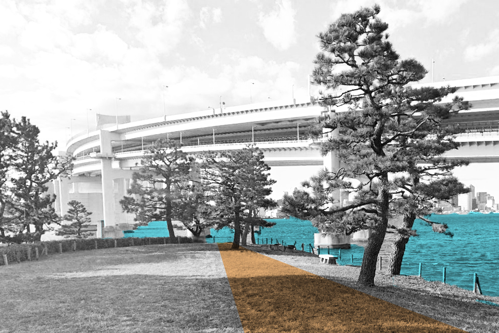 Infrastructure and greenery are juxtaposed along Tokyo’s Odaiba waterfront