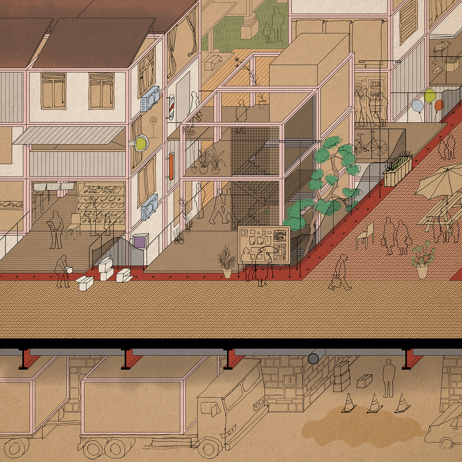 The premise of the studio was to question the replication of standard mixed-use formulas for the production of the city. Building on the concepts of risk, disruption, and continuity established in the fall 2020 seminar “The Project and the Territory: Japan Story,” the studio reimagined the architectural and urban potentials of this unique district. Participants devised alternative scenarios involving people and places—physical spaces and social relations both generic and specific—for the construction of transformative environments. The projects below show new forms of urban life and public space that could be generated in the shadow of a major cultural and economic institution like Tsukiji.