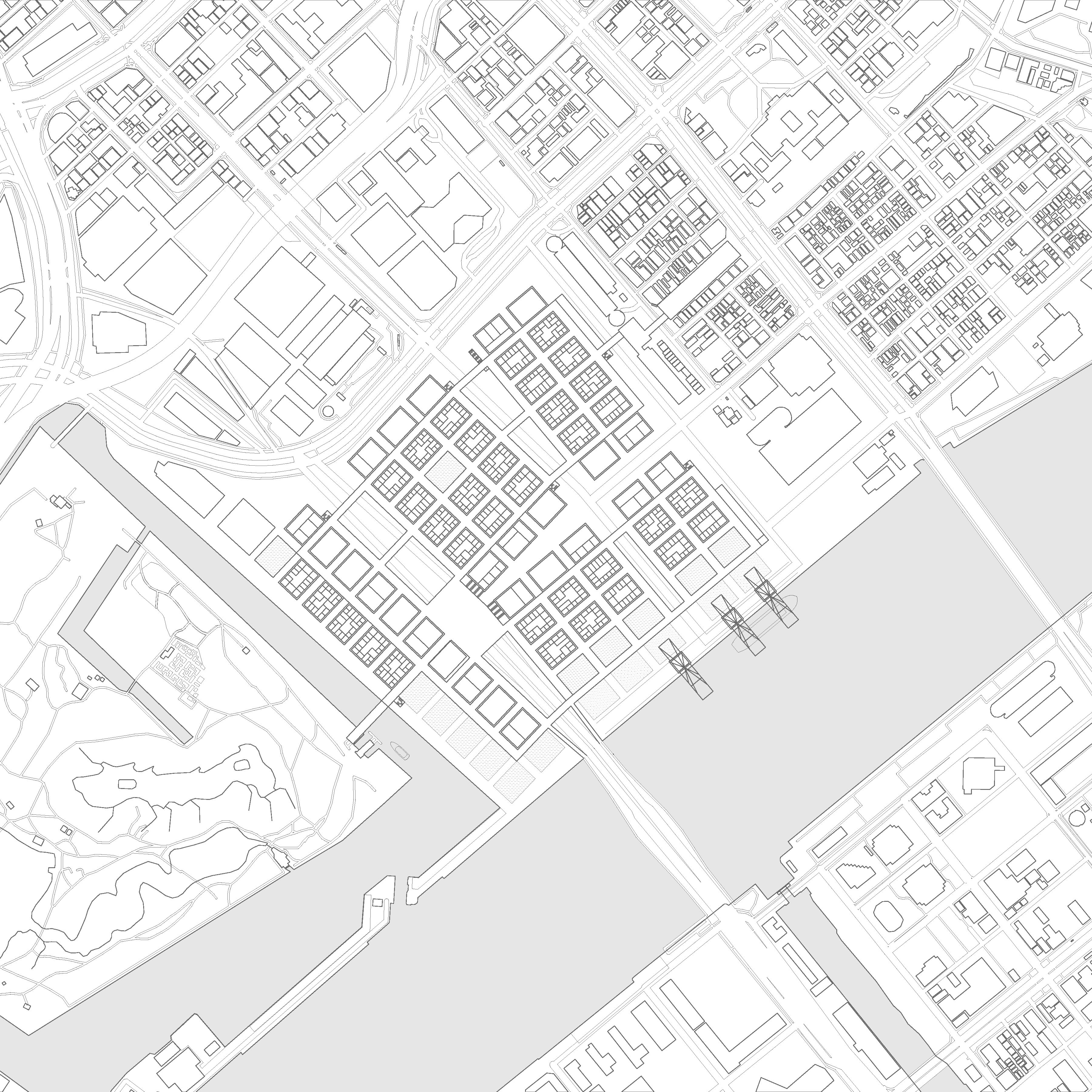 The structural isolation of buildings becomes the springboard for an urbanism that embraces the gaps and the temporal cycles of construction. In Japan, base isolation is a seismic technique that introduces gaps between the structure and its foundations. Gaps are also commonly found between adjacent buildings. A city of gaps, as proposed in this scheme, establishes an infrastructural framework for Tsukiji that enables the neighborhood to be built and rebuilt continuously.