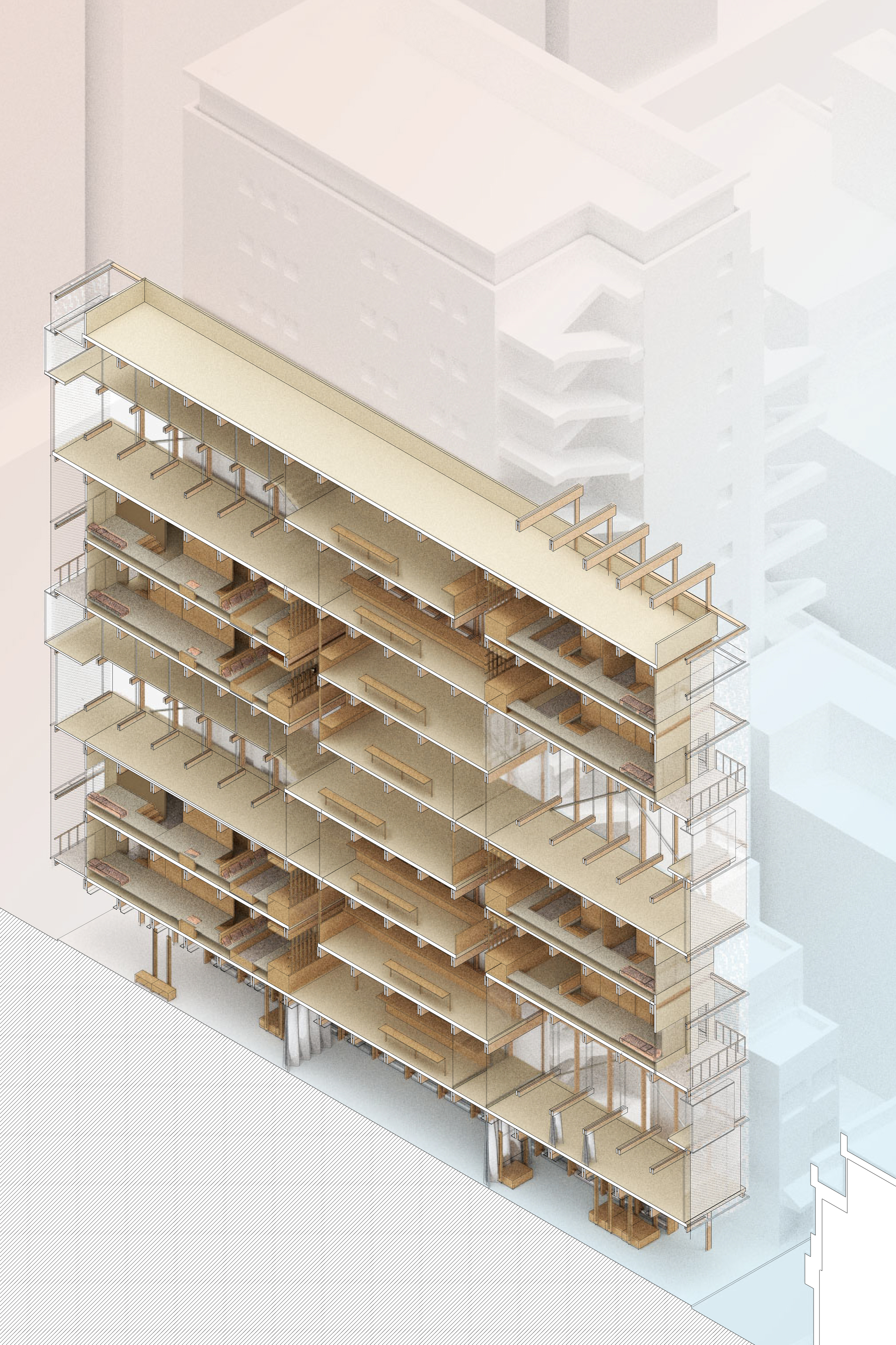 The overall intention of the studio is to combine the individual projects (artifacts) to form the basis for the physical and social revitalization of this unique part of Tokyo. In many of the projects, the connections between the notions of artifice and the social world are further developed and reinforced through a consideration of the natural world. This phenomenon with its links to natural systems, climate, and environmental issues and risks provided the basis for unconventional approaches to the topic, including the use of roofscapes.