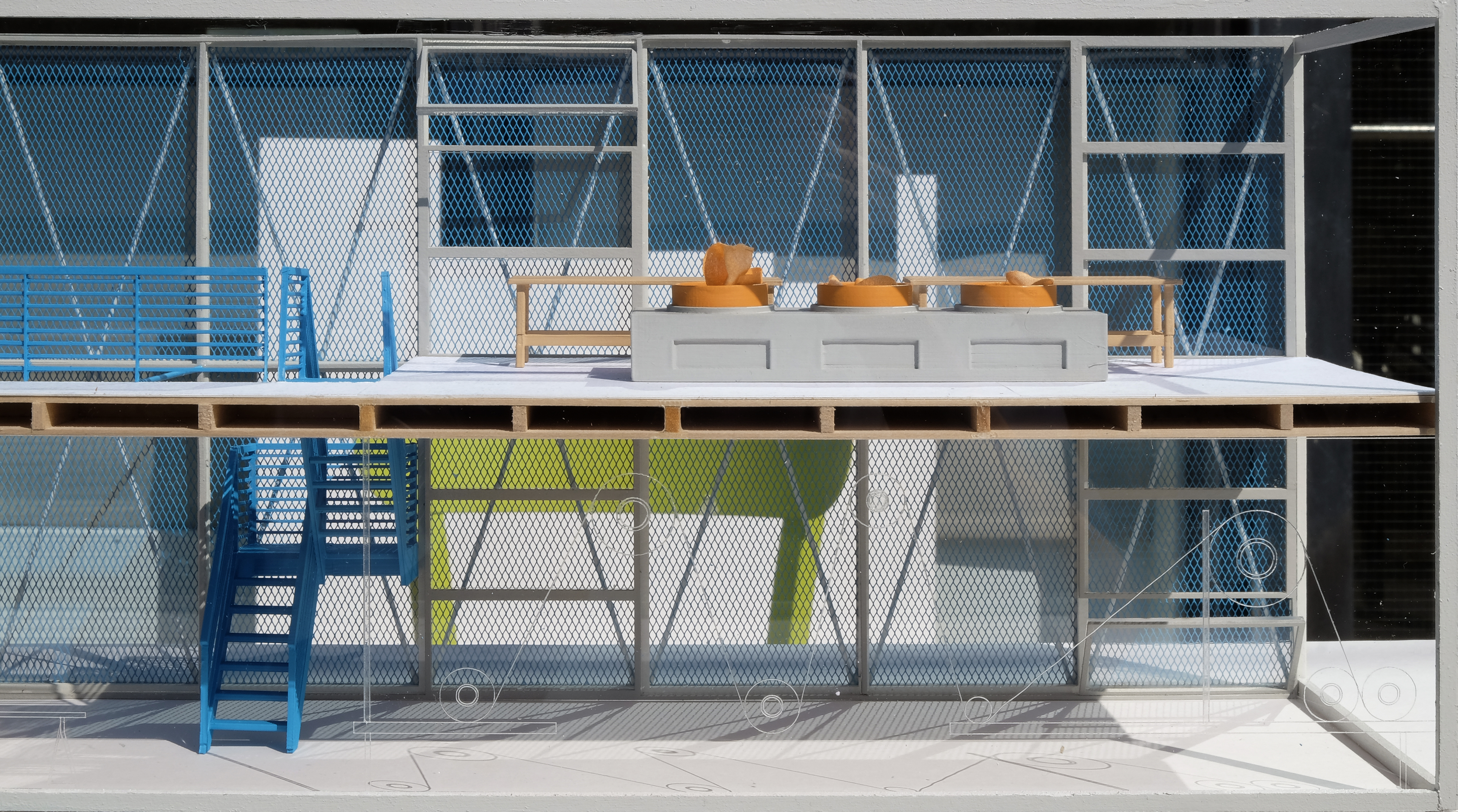 The agenda of housing is combined with the program of a dye workshop. Artisans live and work on-site, engaged in a craft that places specific demands on the dimensions of a room. Space is required for fabric to be stretched, soaked, pressed, and hung to dry. Taking inspiration from the work of Japanese textile designers, the project makes use of the affective qualities of layering, filtering, and opacity as a means to regulate the relationship between interior life and exterior appearance.