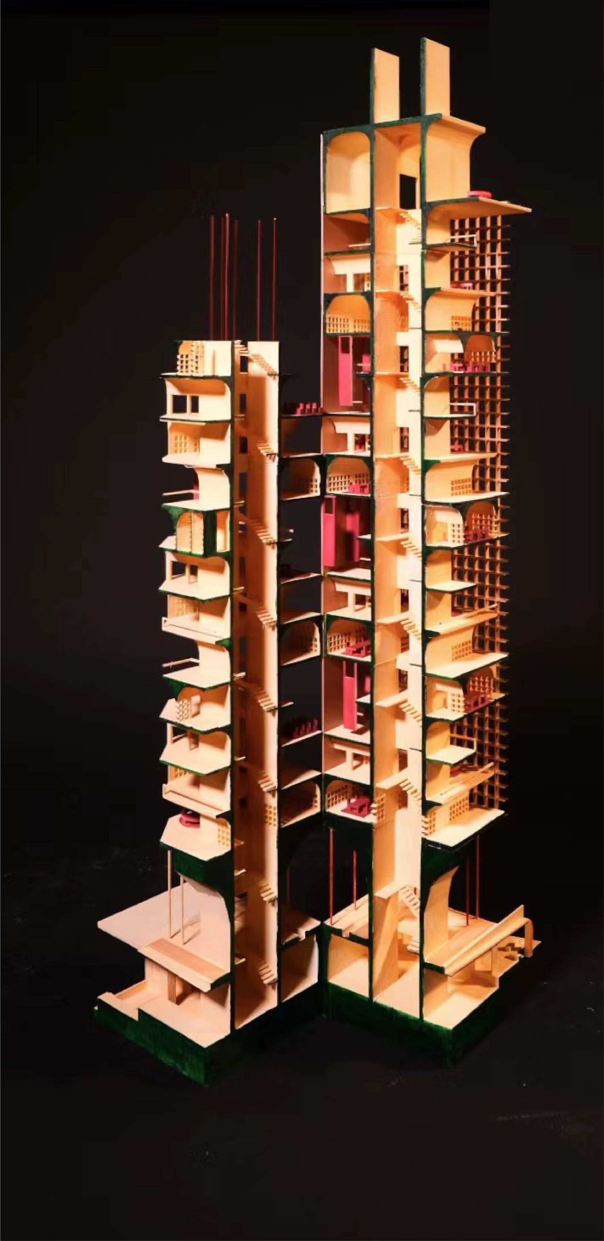 Archiving is a process through which individuals and collectives reflect on their history and identity. Archives, therefore, become symbols of the culture and history of a community. Today the ongoing exchange of digital and physical materials can be integrated into the archiving process. The goal of the project is to create a monument that holds the archive of the entire city and, at the same time, exchanges content with the public. Spatially, the tower is organized by a single module that rotates 90 degrees on each level. Within each module, the archiving programs are embedded in the module while the exchanging programs are located at the periphery. The northern facade is an urban monument where artifacts in the archive are displayed.