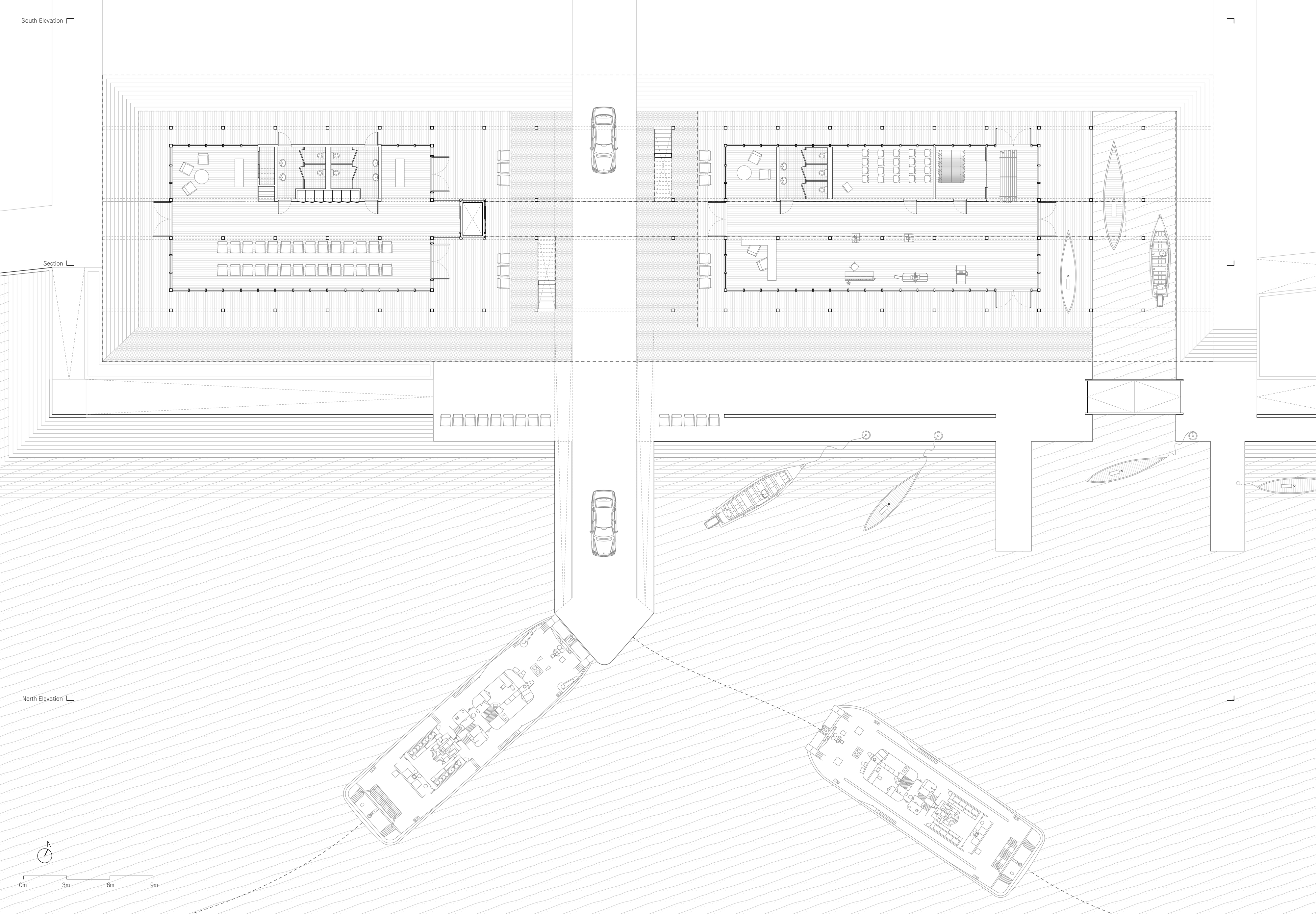 The ferry terminal comprises a variety of programs related to both tourism and the community