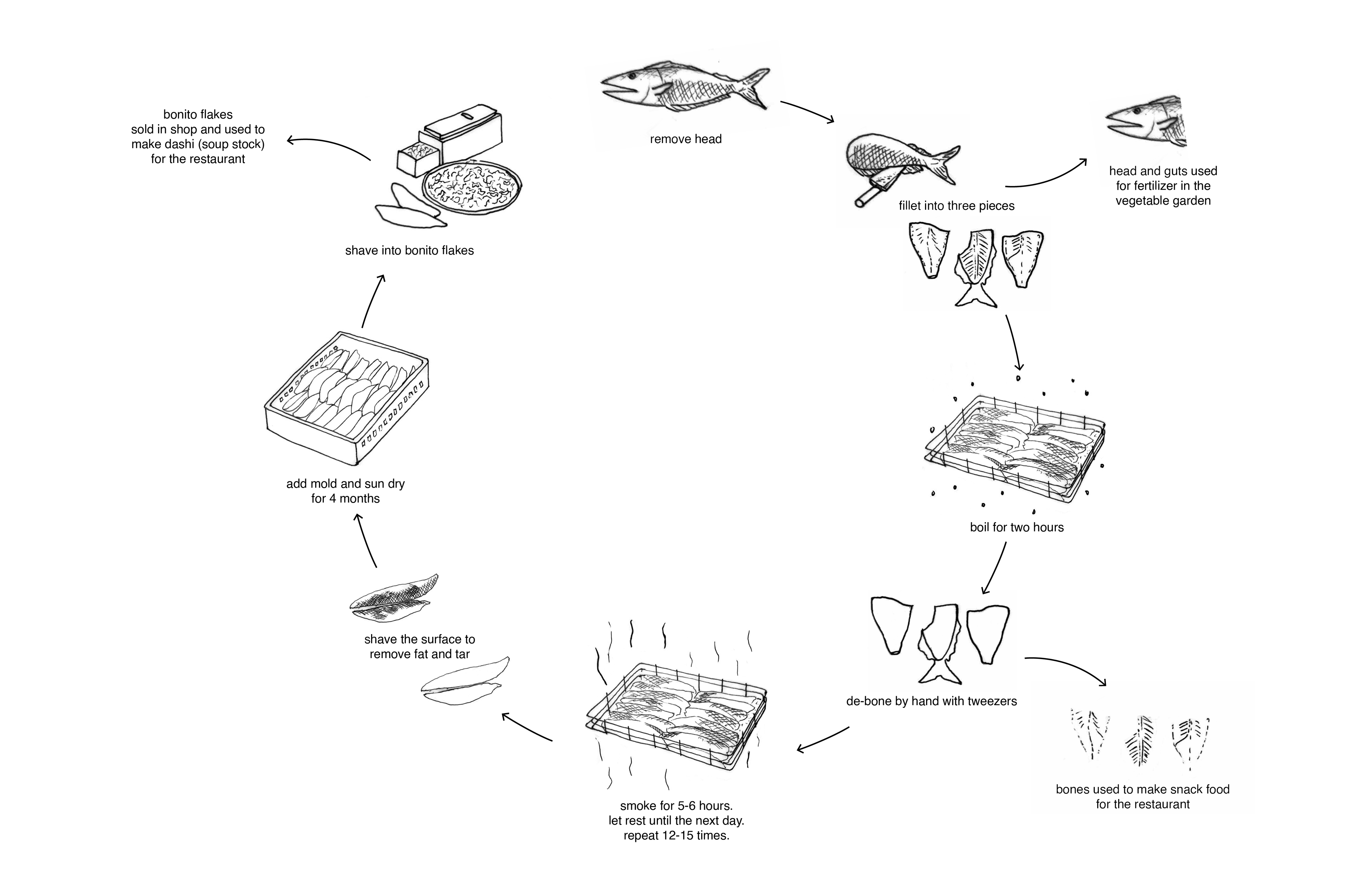 Katsuobushi production epitomizes Japanese culinary traditions of sustainable eating where nothing goes to waste
