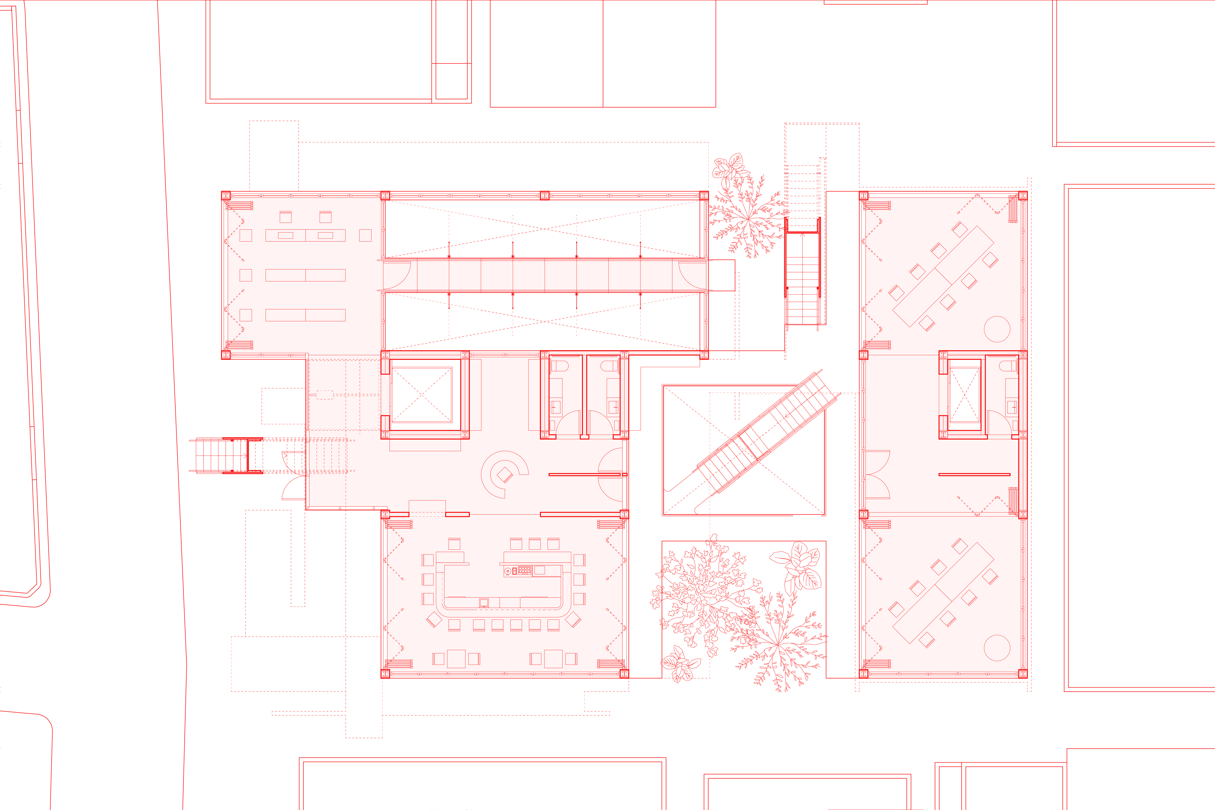 Architecturally, the design integrates diverse programs within a complex, layered form that invites exploration. It features a vertical configuration to create accessible public spaces, addressing the scarcity of such areas. Inspired by Kumiko Inui’s “little spaces” concept, the project incorporates intimate, human-scale areas that foster community interaction and a sense of belonging.