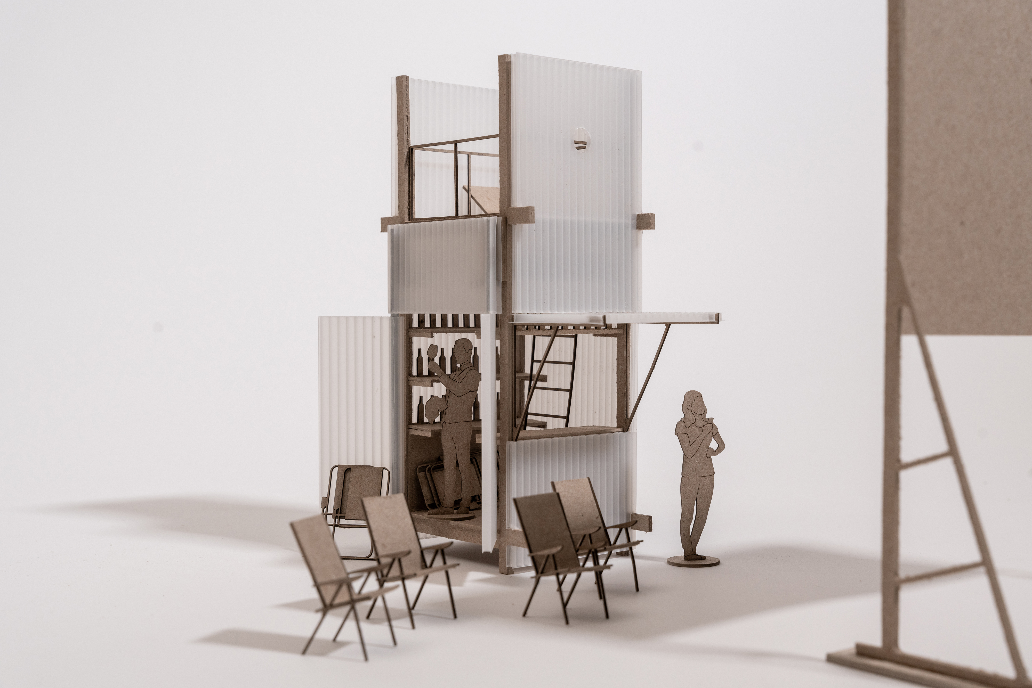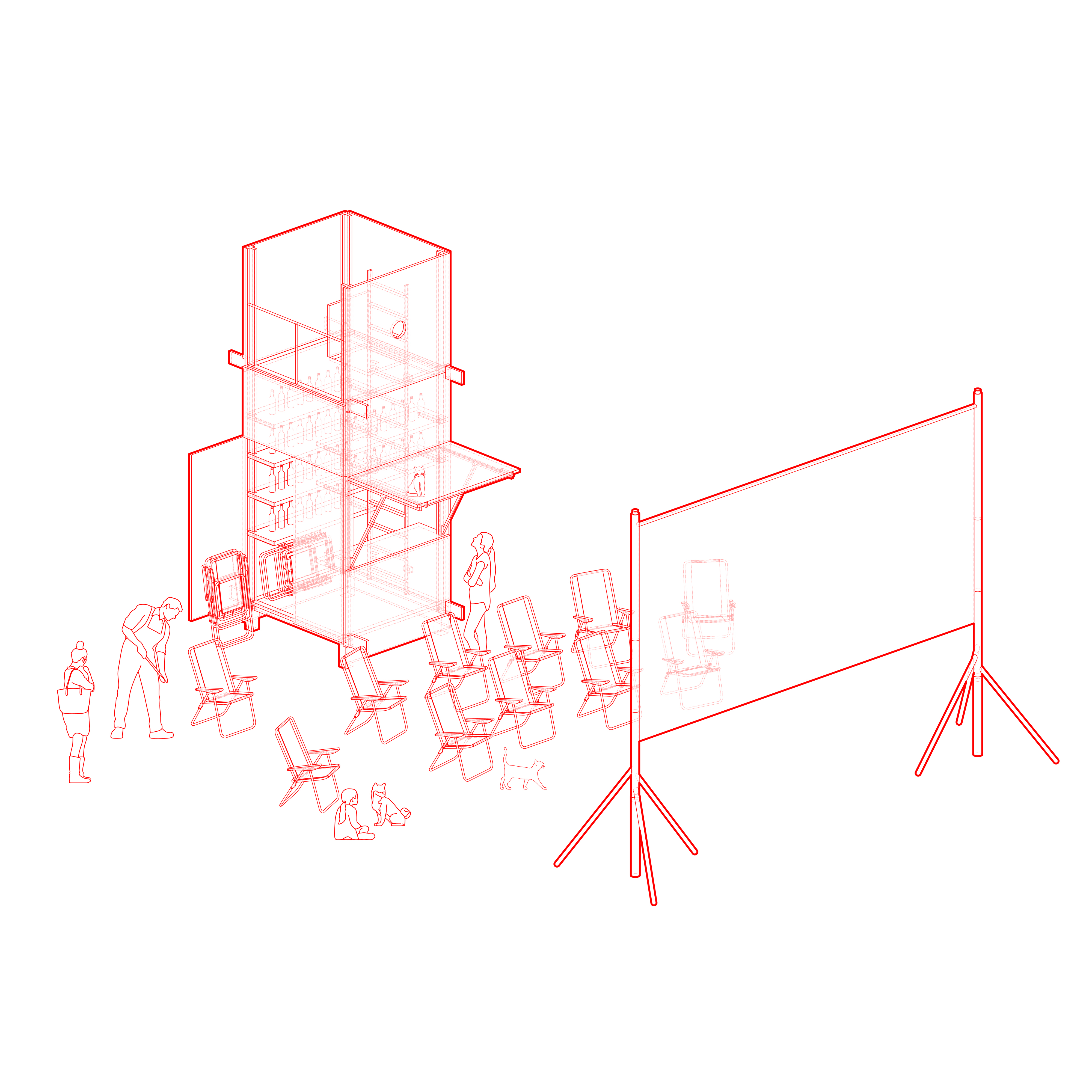 As a small urban intervention, this portable cinema and bar brings the experience of the project to other sites