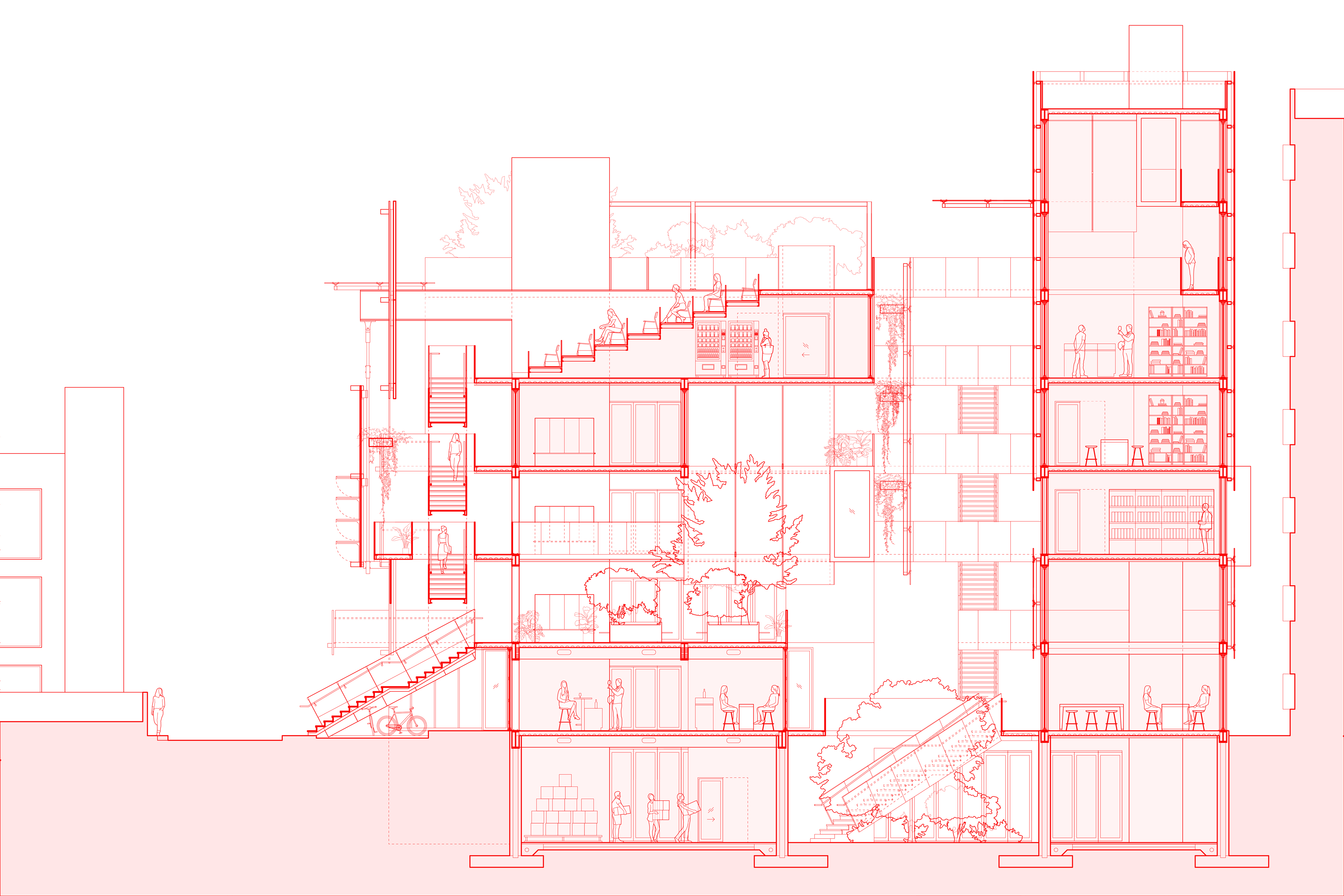 Through the diversity of spaces, the project creates a small urban condition as a vertical street