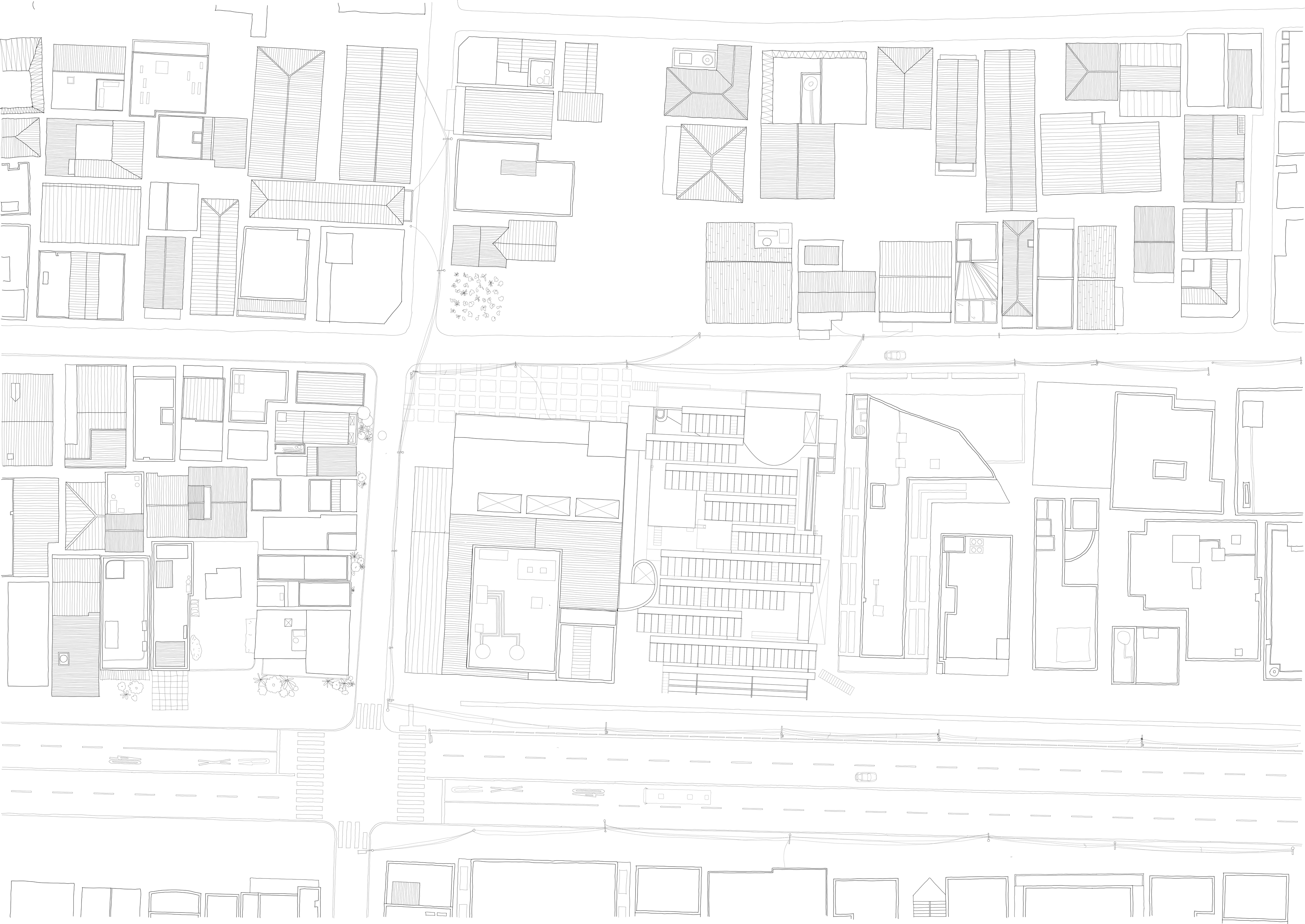 An immediate site plan showing the varying scales of the surrounding buildings and streets and their relationship to the Washi-making workshop