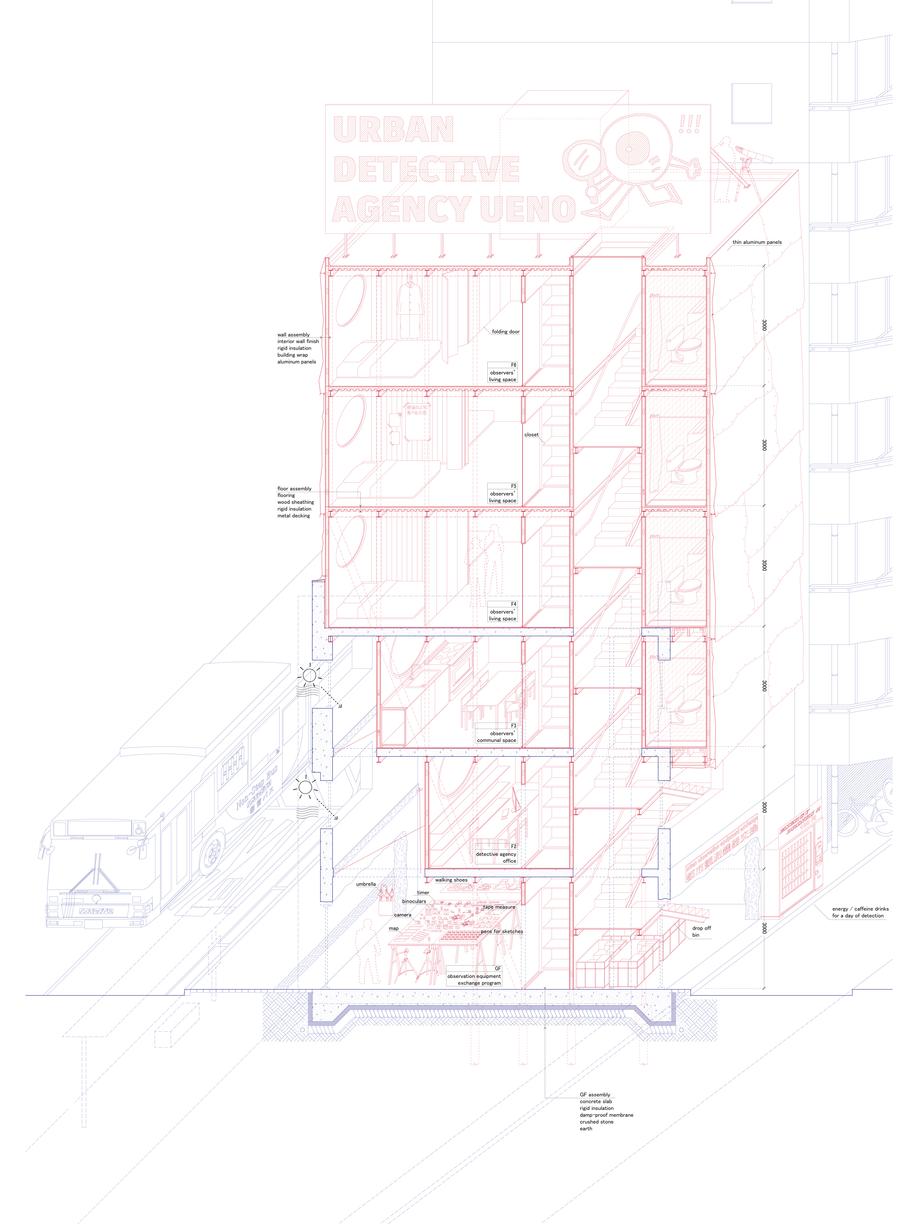 Program: Urban Detective Agency, Club, Detective Residency, Workshop, Bar, Office, Print room