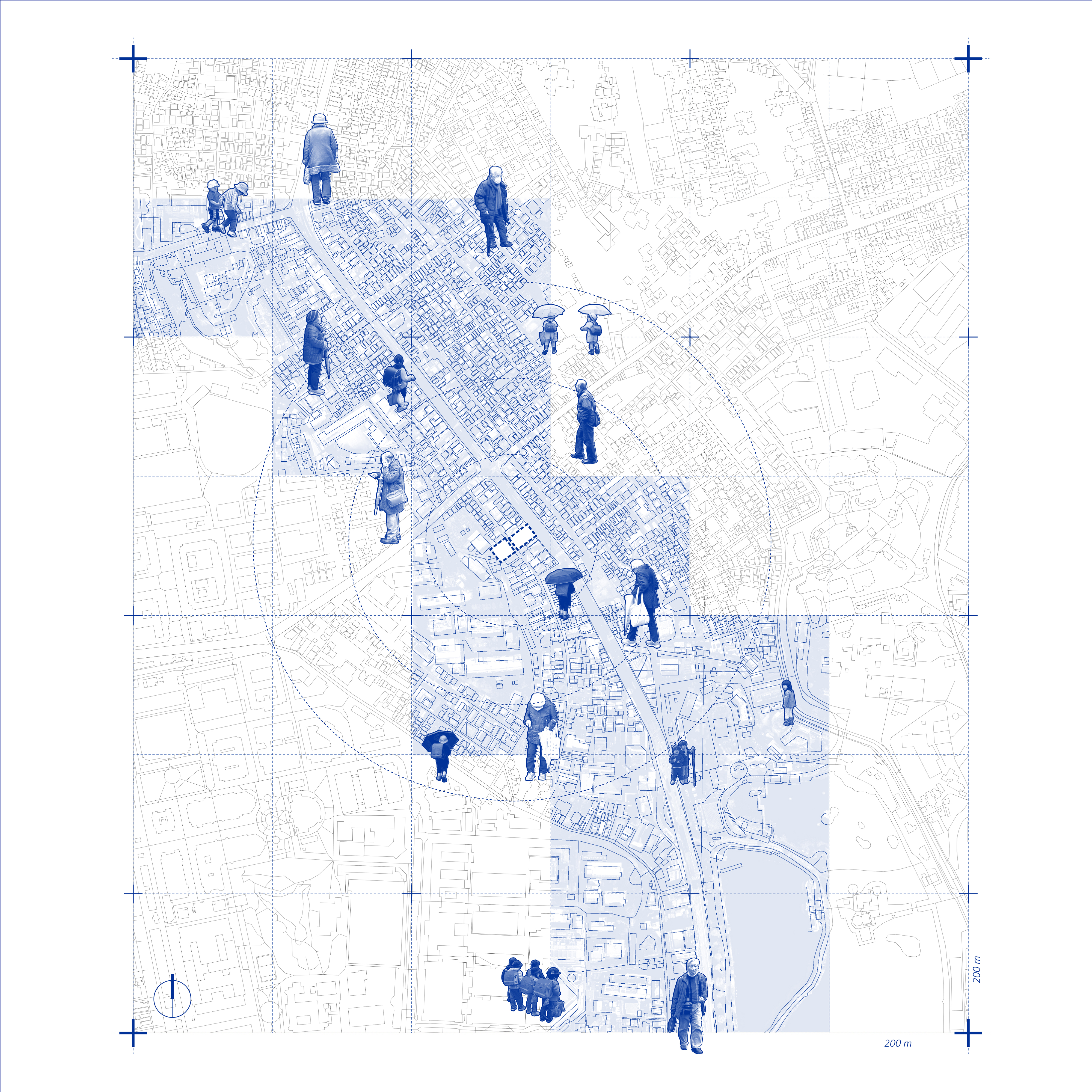 Mapping of senior people and children on the main street of Nezu. Senior generations are generally facing the problem of social isolation, and some of them are facing the problem of re-employment; As for the younger generation, due to insufficient social system support, inadequate childcare facilities, and high childcare costs, Japanese society has been suffering from a low birth rate
