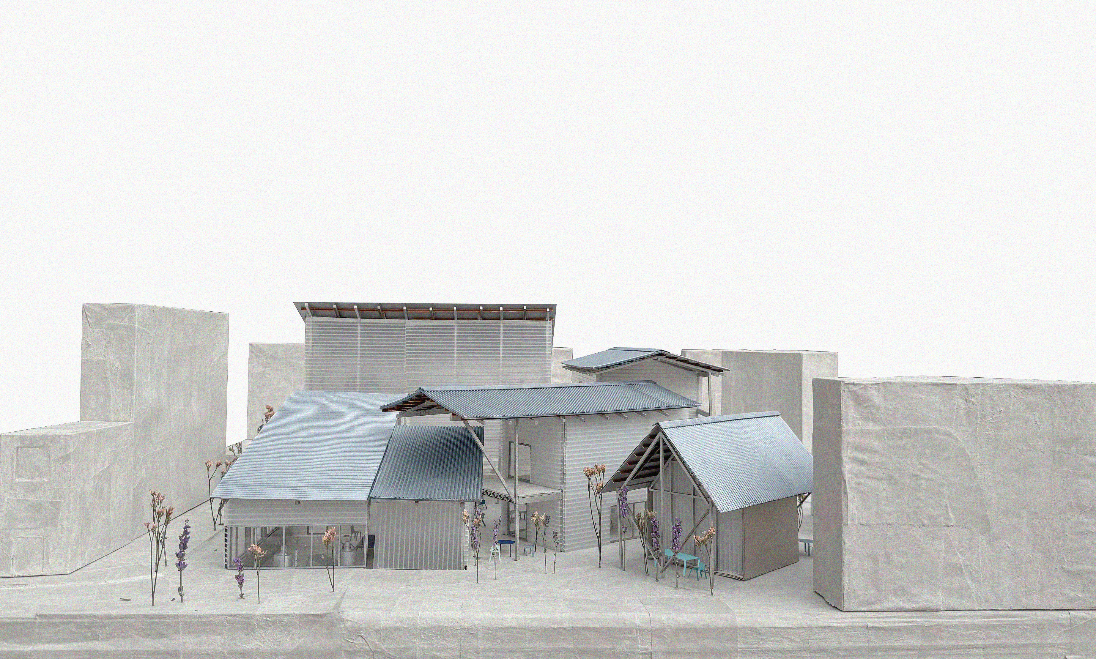 This project proposes a domestic-scale space in Shimokitazawa that fosters conviviality through everyday and collaborative production. It brings together craft, art, and ordinary labor— such as carpentry, ceramics, textiles, and coffee roasting—into a flexible framework that supports both making and gathering. Rather than treating craft as a static aesthetic, the project frames it as an evolving, embedded practice shaped by local materials and techniques. A series of interconnected buildings form a porous spatial system that expands outward, reflecting the fluid transitions between interior and exterior.