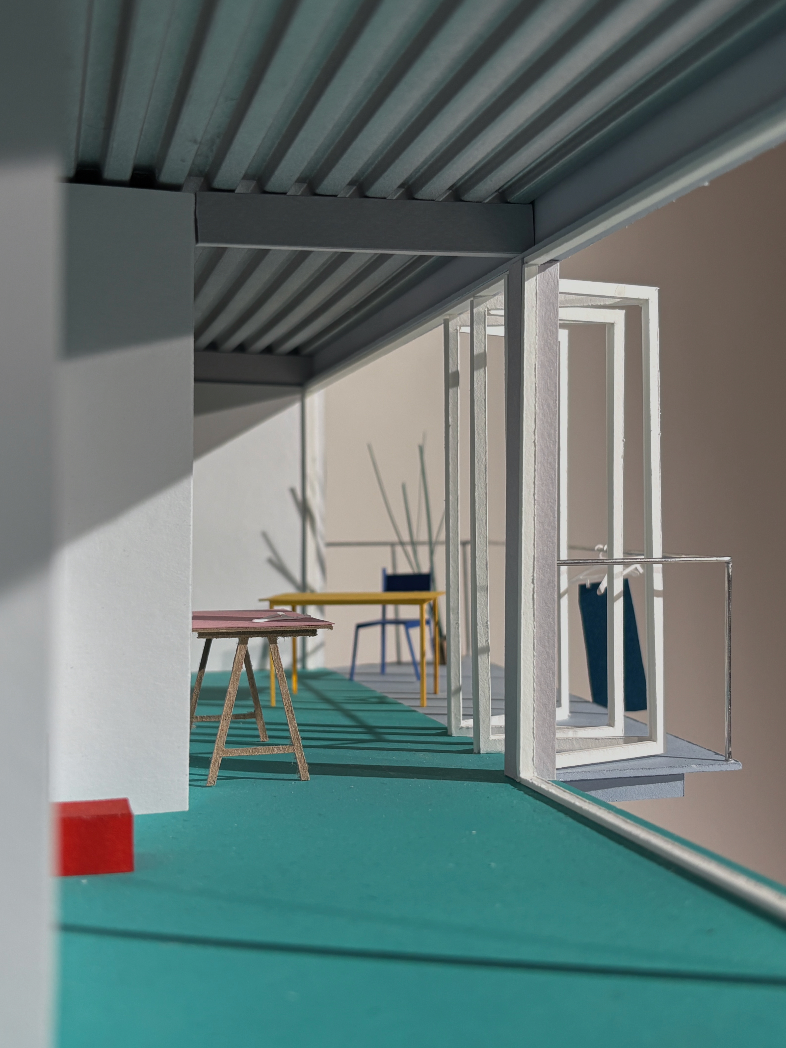 A model photo shows the lived-in condition of the balcony, where daily activities extend outward.
