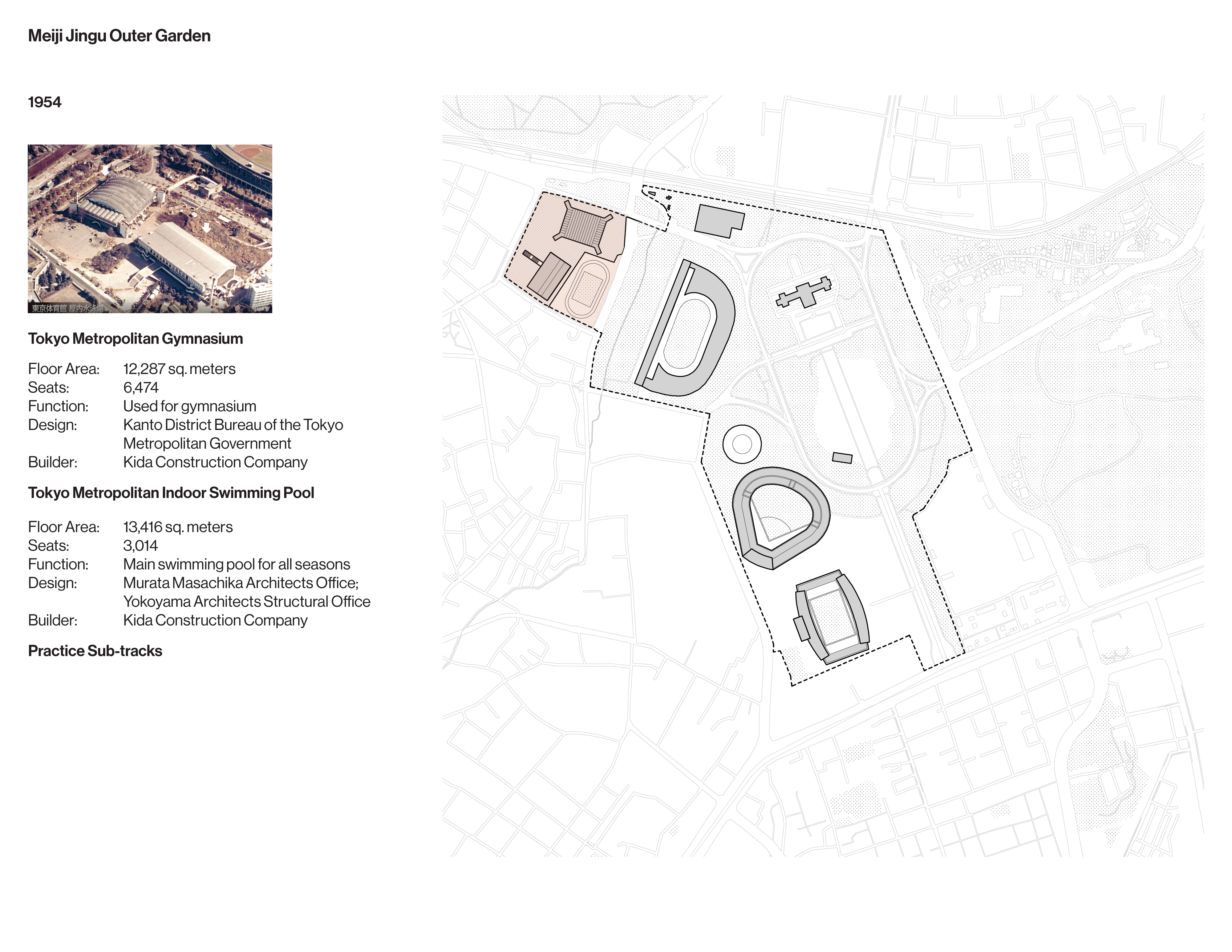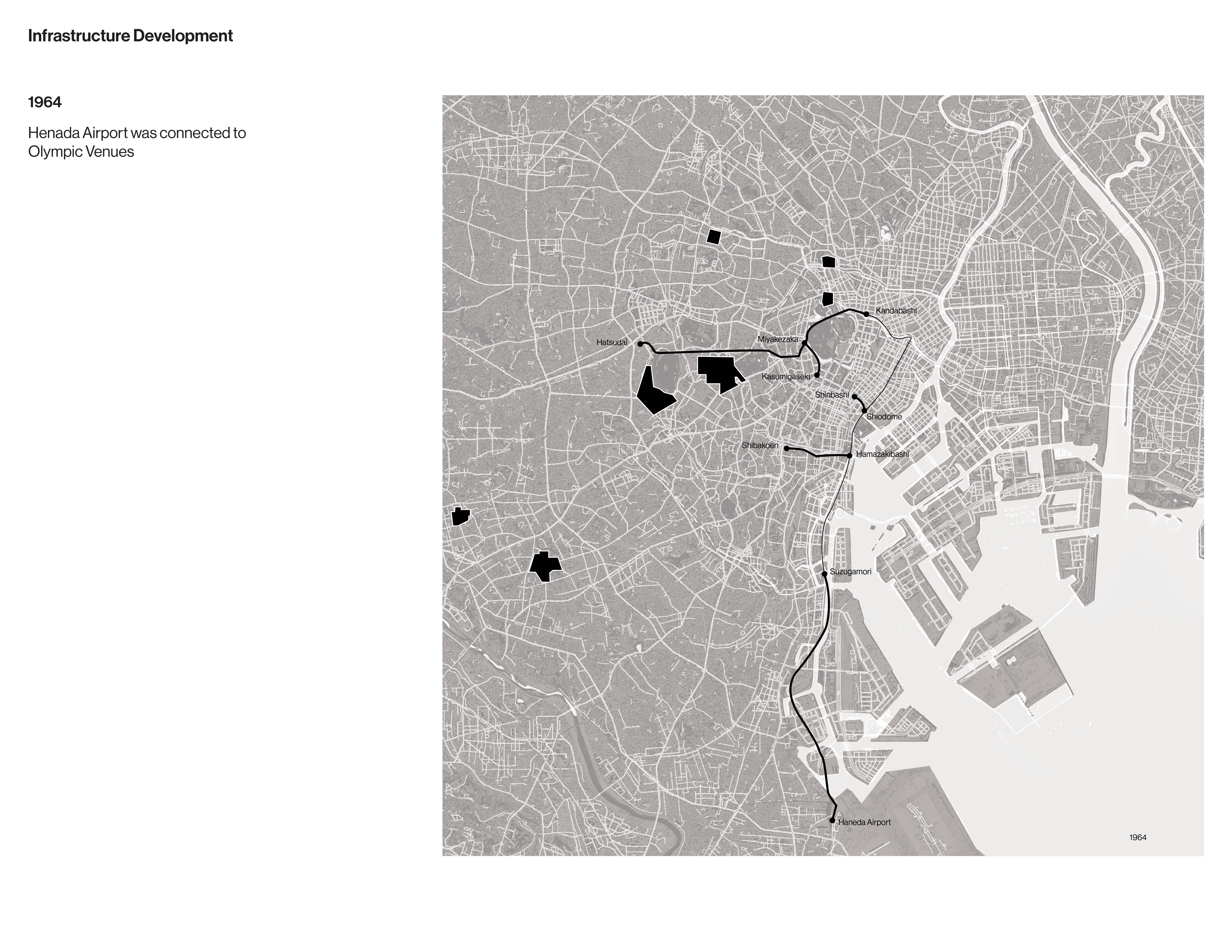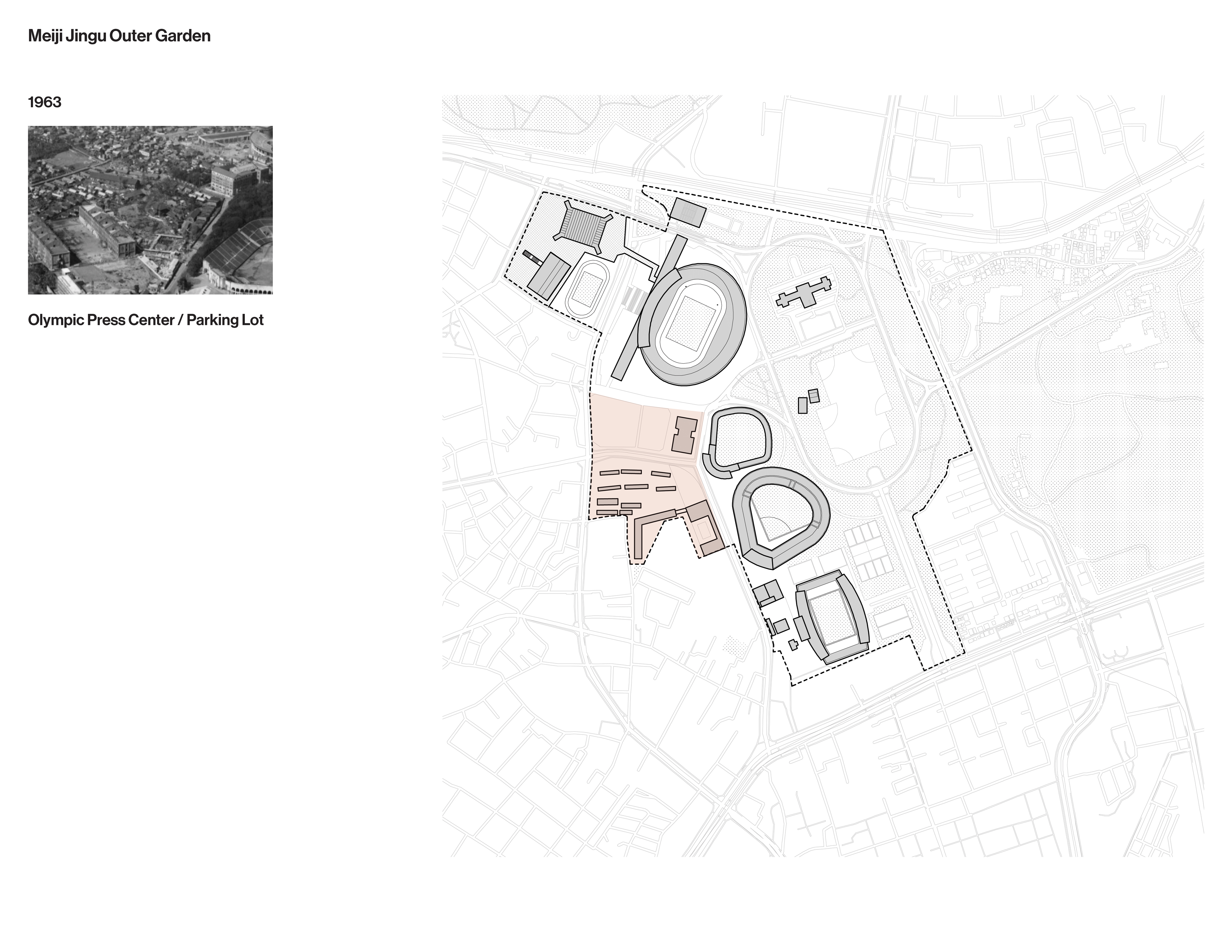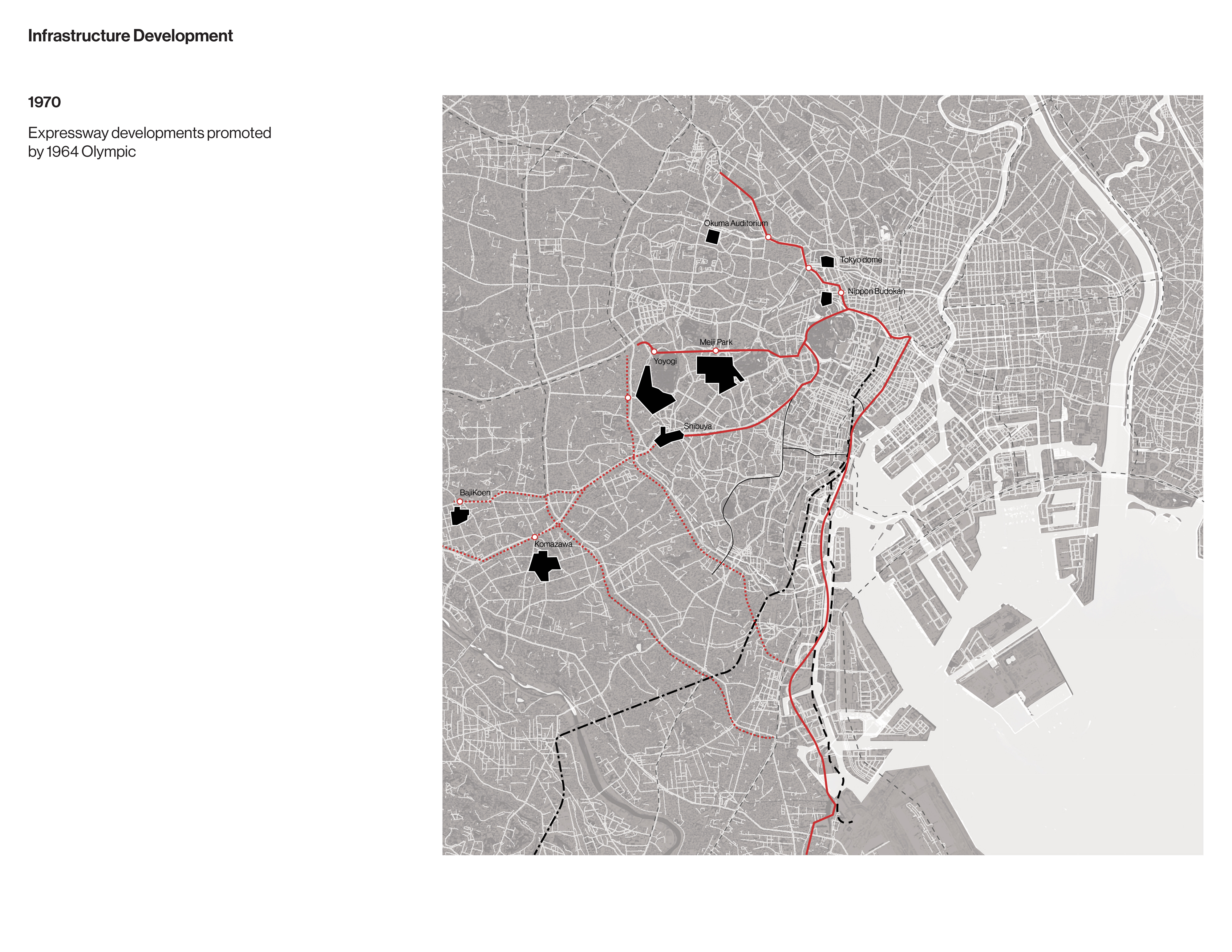 The drawings that follow examine the development and legacy of Olympic facilities and infrastructure in Tokyo from the 1930s to the present.