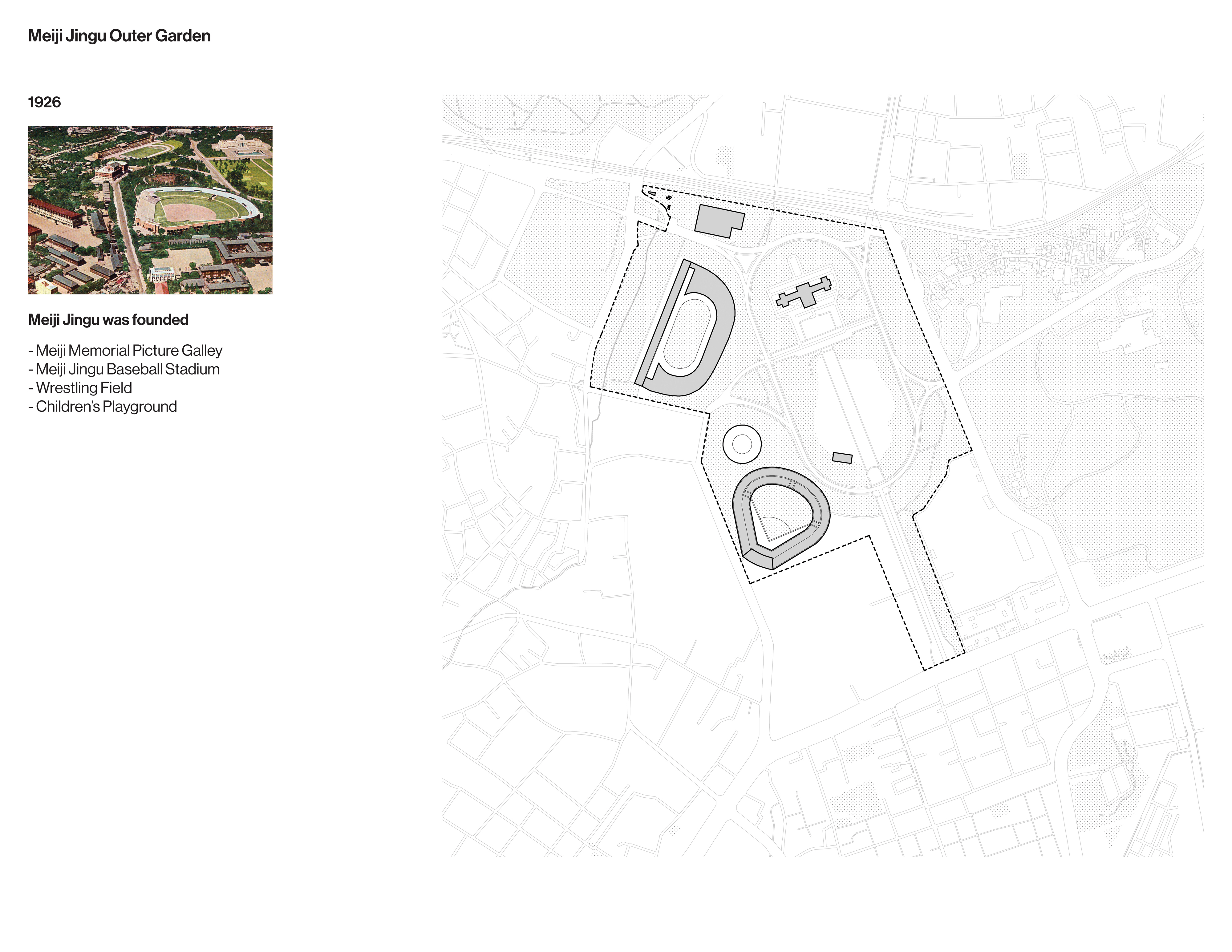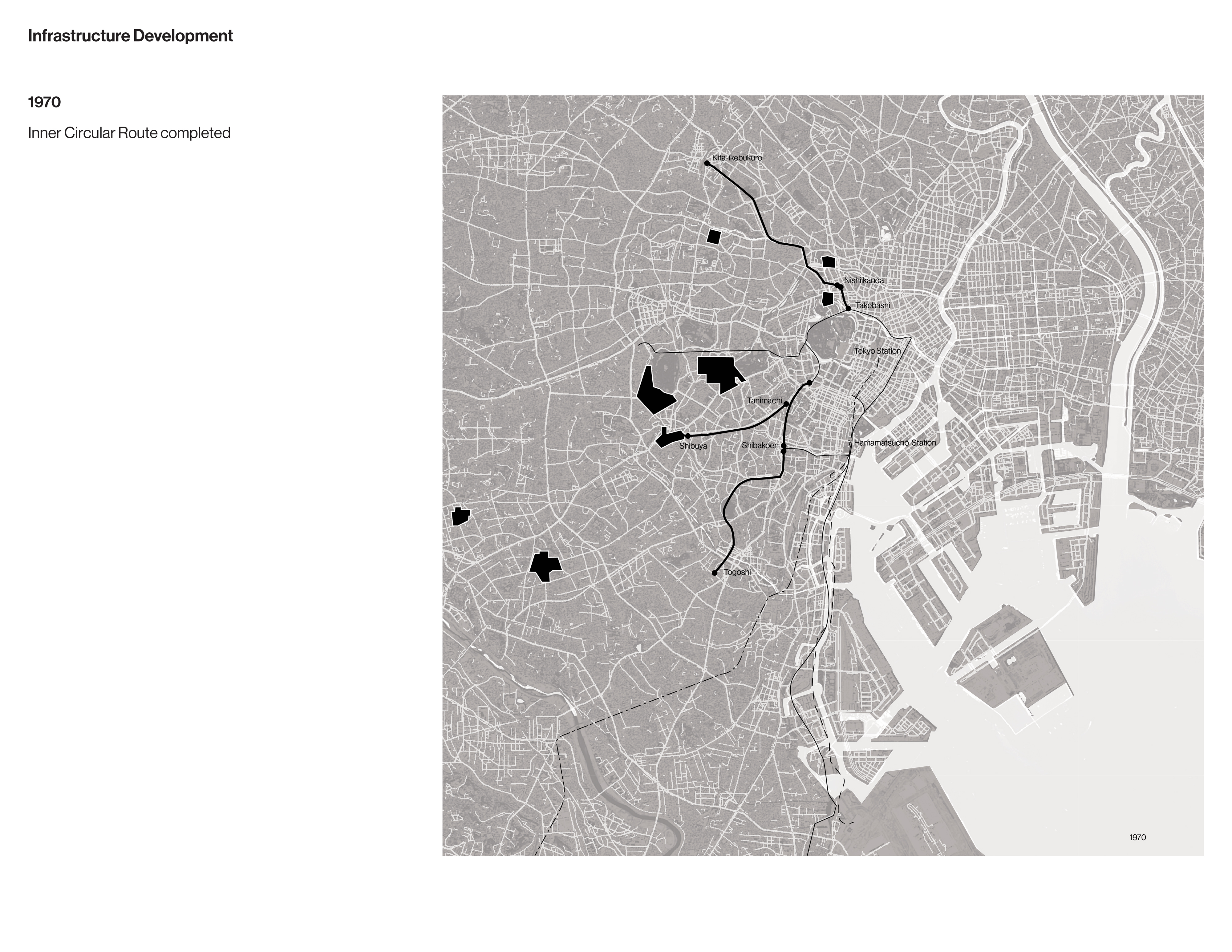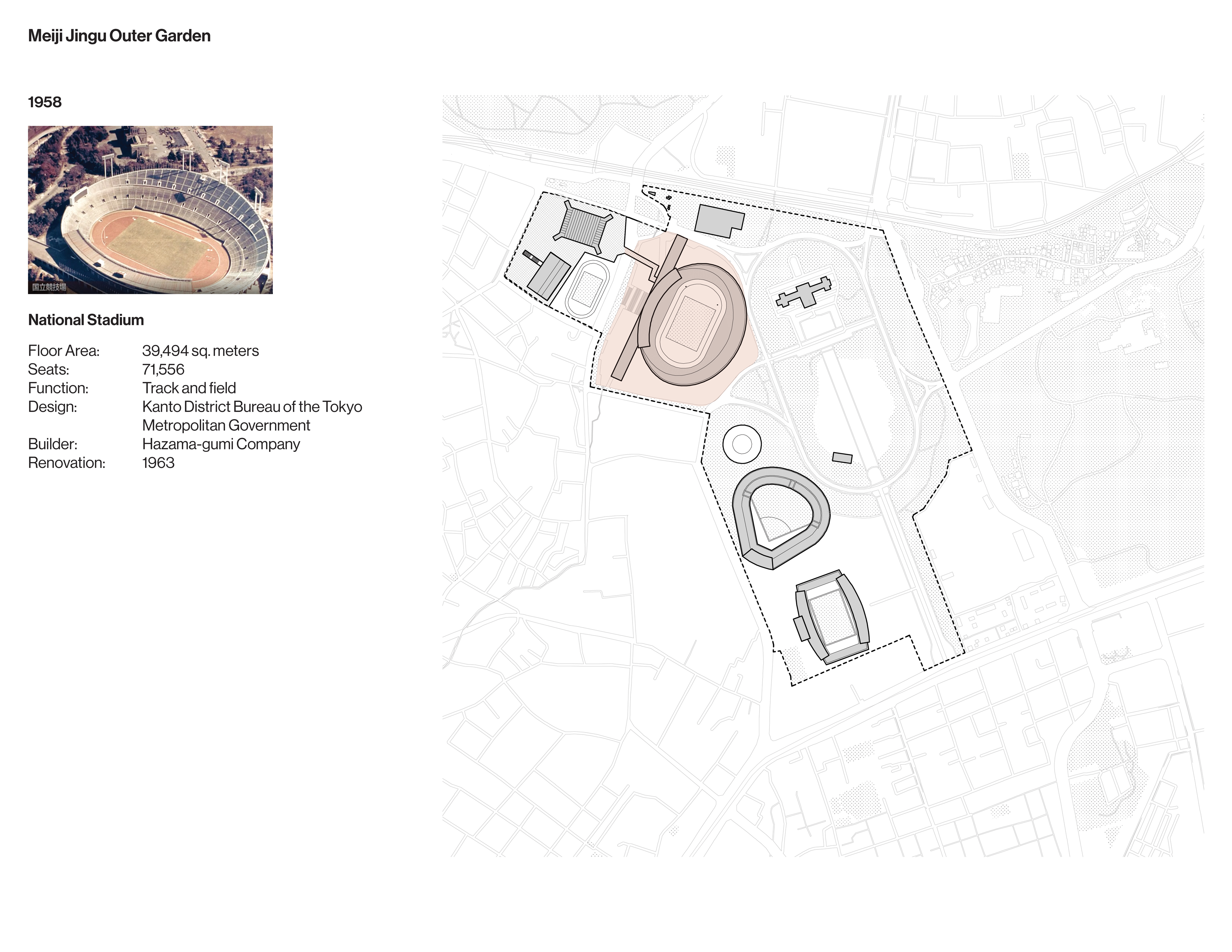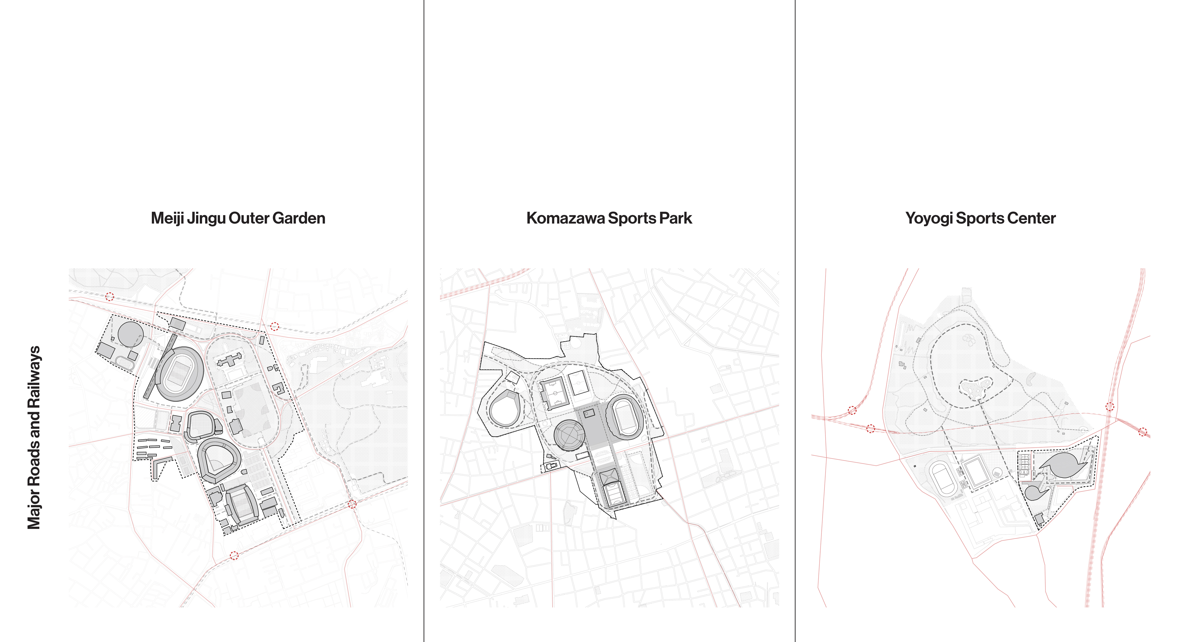 The drawings that follow examine the development and legacy of Olympic facilities and infrastructure in Tokyo from the 1930s to the present.