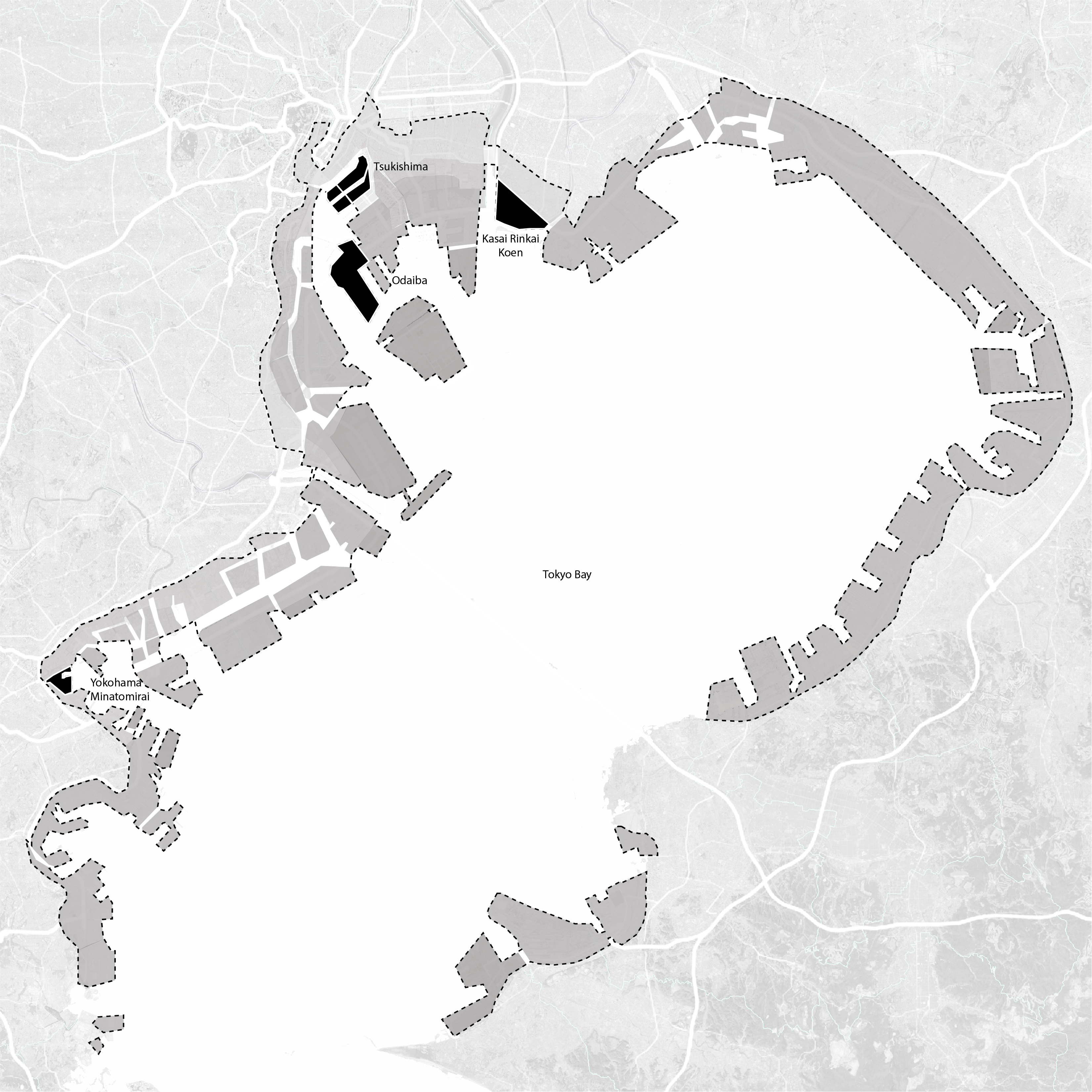 Land reclamation has a long history in Japan, where urban settlements are often squeezed between coasts and a mountainous interior. Since the premodern period, Tokyo's shoreline has been transformed incrementally to create residential, commercial, and industrial districts. Roughly 15% of the original bay area has now been filled in.
